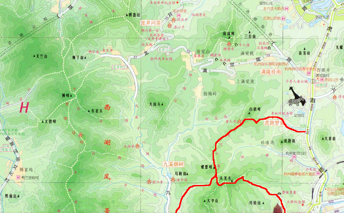 三:在贵人阁亭子稍作休息,(若能见度好的话可同时看到西湖和钱塘江)便可沿作路标往虎跑走,大约40分钟到达虎跑路口。请各位老师在虎跑入口处等候校车,下午3:30分乘校车返校;