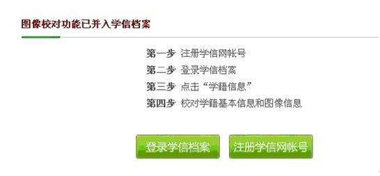 学生根据网页提示先进行学信网帐号注册,然后实名激活帐号后,登录学信档案,点击“学籍档案”进入“学籍信息”页面进行图像信息核对: