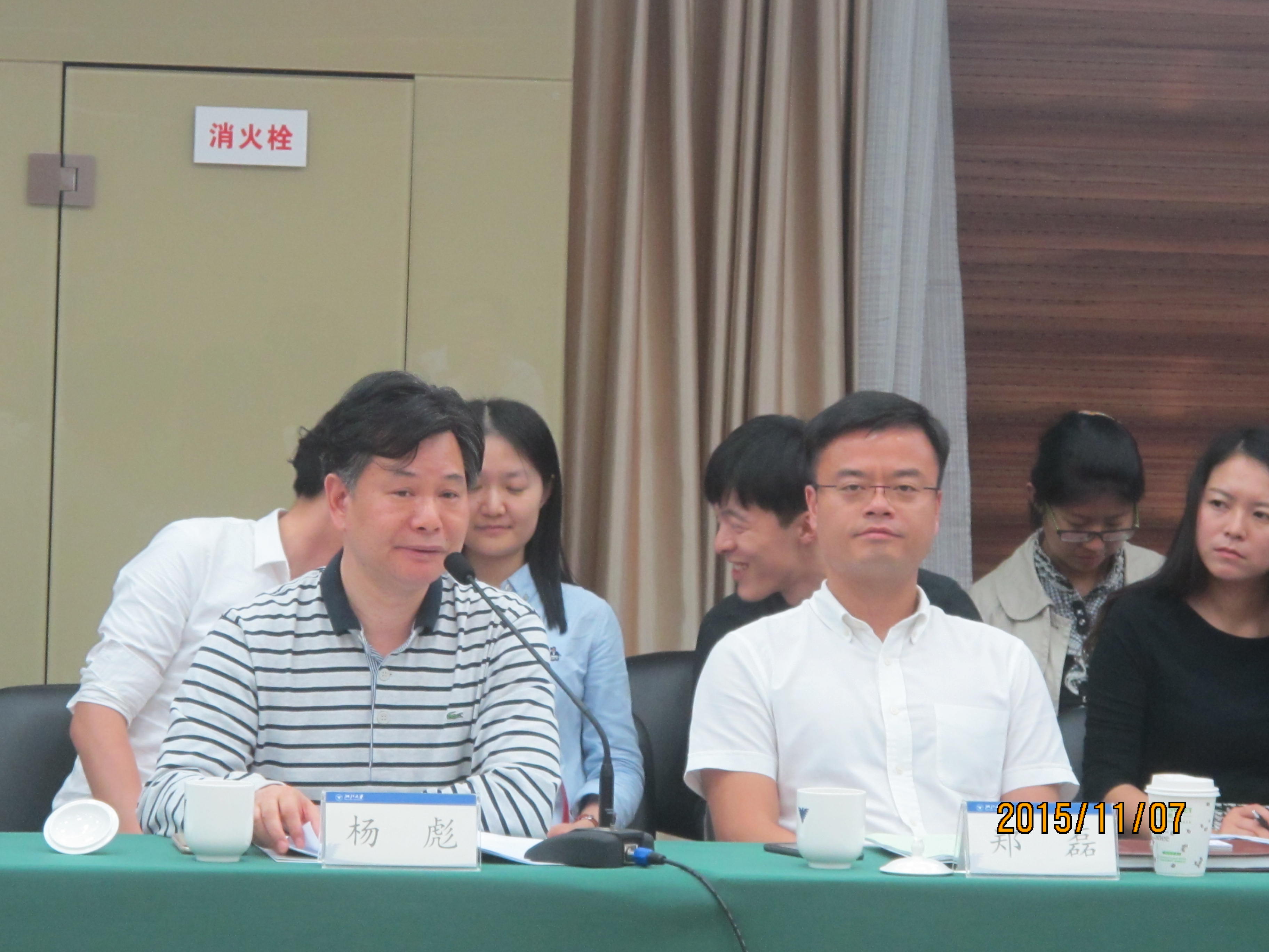 为进一步提升教学质量,发挥校内外导师在联合培养浙大金融硕士研究生中的作用,经济学院于11月7日在紫金港校区校友活动中心召开了“金融专业学位研究生培养(2015)年度会议”,国信证券监事会主席何诚颖、建行浙江省分行副行长劳新江、杭州市金融办副主任俞伟英等20余位校外导师代表、2015级金融硕士班全体同学、研究生院常务副院长王家平、经济学院党委书记张荣祥、副院长顾国达、杨柳勇及金融系部分教师代表参加了会议,会议由杨柳勇副院长主持。