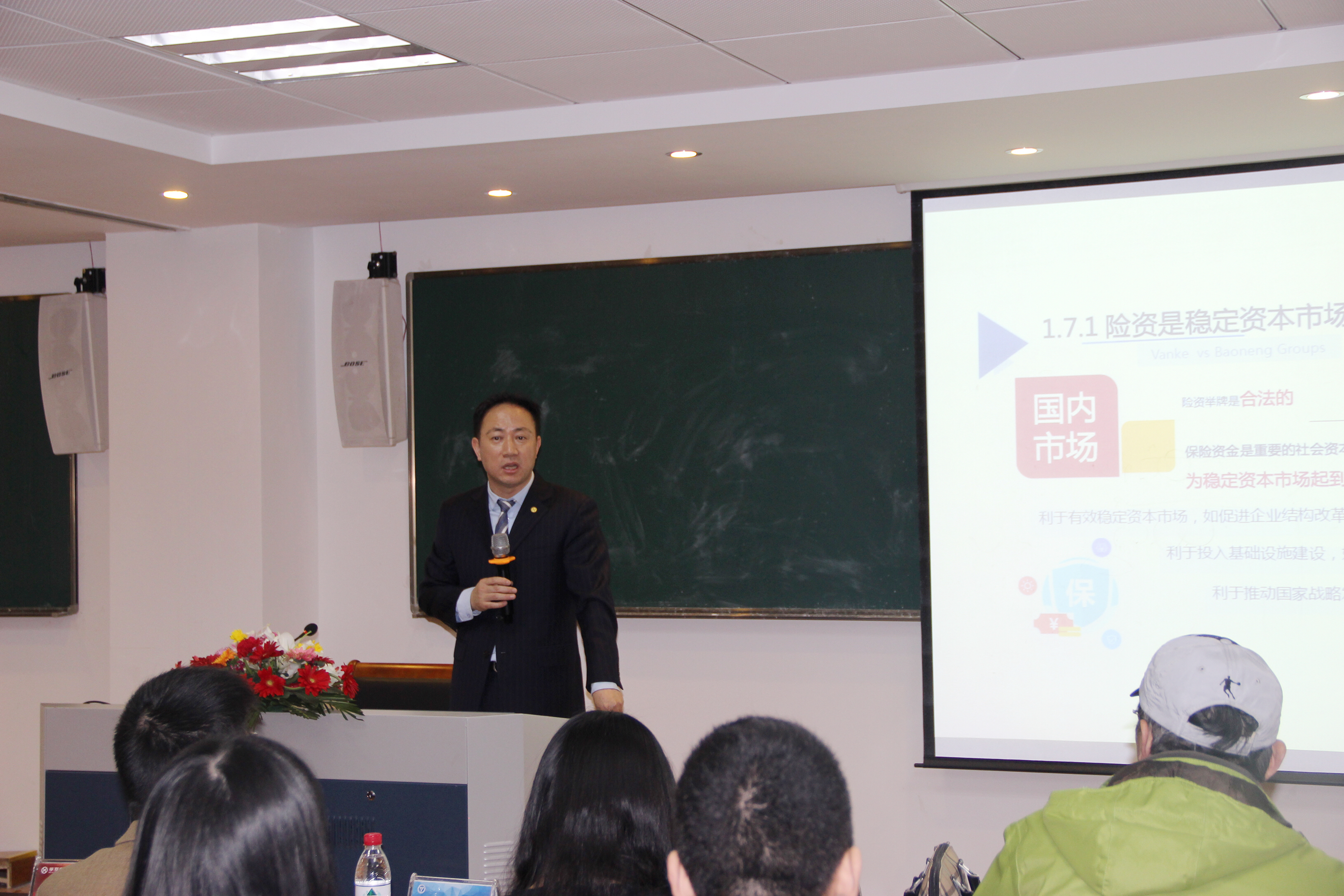 接着,浙江大学经济学院代表杨柳勇与华夏保险浙江分公司代表曹祥涛签订校企合作战略协议;然后,浙江大学经济学院在华夏保险浙江分公司设立“浙江大学金融硕士研究生教育实践基地”并授牌,同时聘任曹祥涛为金融硕士专硕的校外兼职导师。在此次合作中,双方就企业人才继续教育、企业进高校、企业开放日等一系列项目也达成一致。随后,曹祥涛同志带来一场主题为《寿险行业的现状与展望》的精彩讲座,从当下热点事件出发,对寿险行业的资金管理、发展前景等进行深入剖析。此次讲座透过校企合作将保险的正能量深入各学子心中,为学子职业生涯规划带来启发。