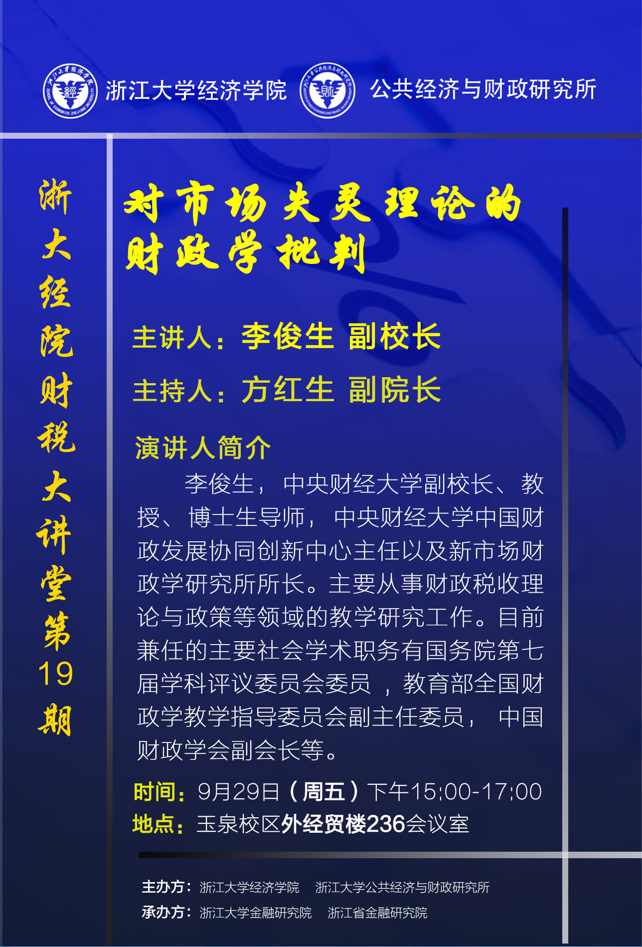 浙大经院财税大讲堂第19期预告