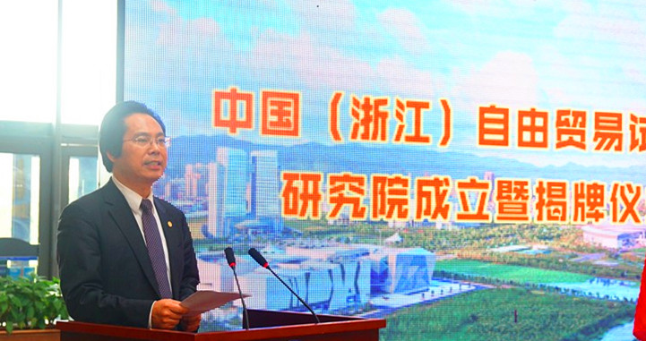 10月24日下午,“中国(浙江)自由贸易试验区研究院”成立暨揭牌仪式在舟山隆重举行。中国(浙江)自由贸易试验区管理委员会常务副主任、舟山市市长温暖为研究院揭牌并讲话;自贸试验区管委会副主任马国华宣读中国(浙江)自由贸易试验区研究院的成立文件;浙江大学副校长罗卫东和浙江海洋大学党委书记刘宏明分别代表浙江大学和浙江海洋大学致辞,中国(浙江)自由贸易试验区研究院院长黄先海在仪式上介绍了研究院组建情况。仪式由舟山市政协副主席、自贸试验区管委会副主任夏文忠主持。