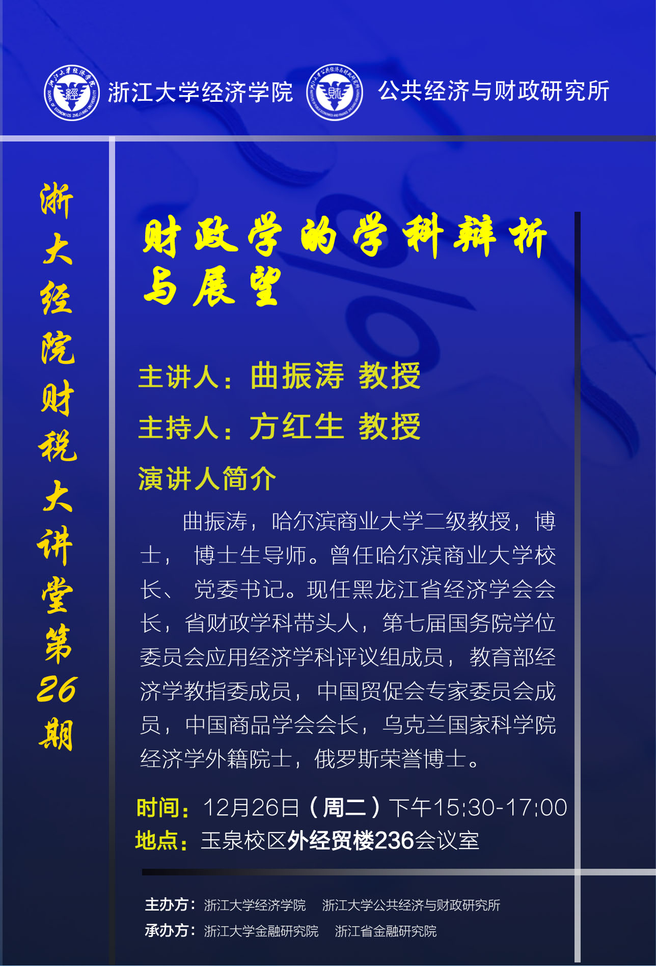 浙大经院财税大讲堂第26期预告