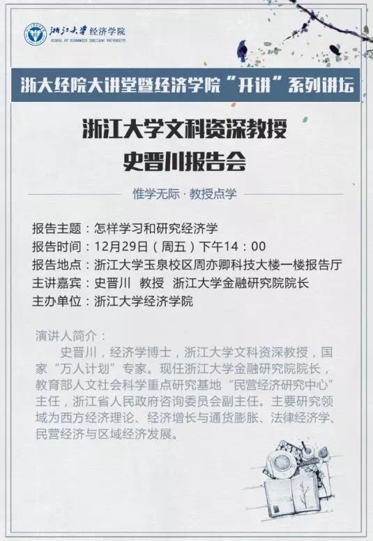 浙大经院大讲堂暨经济学院“开讲”系列讲坛