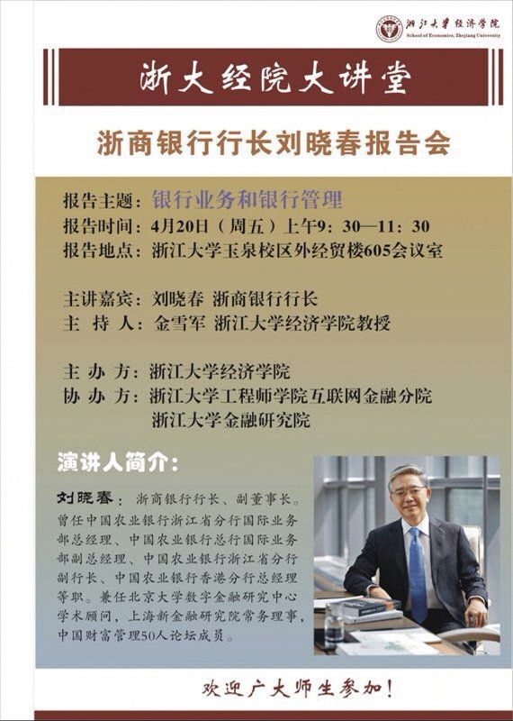 浙大经院大讲堂:浙商银行行长刘晓春报告会