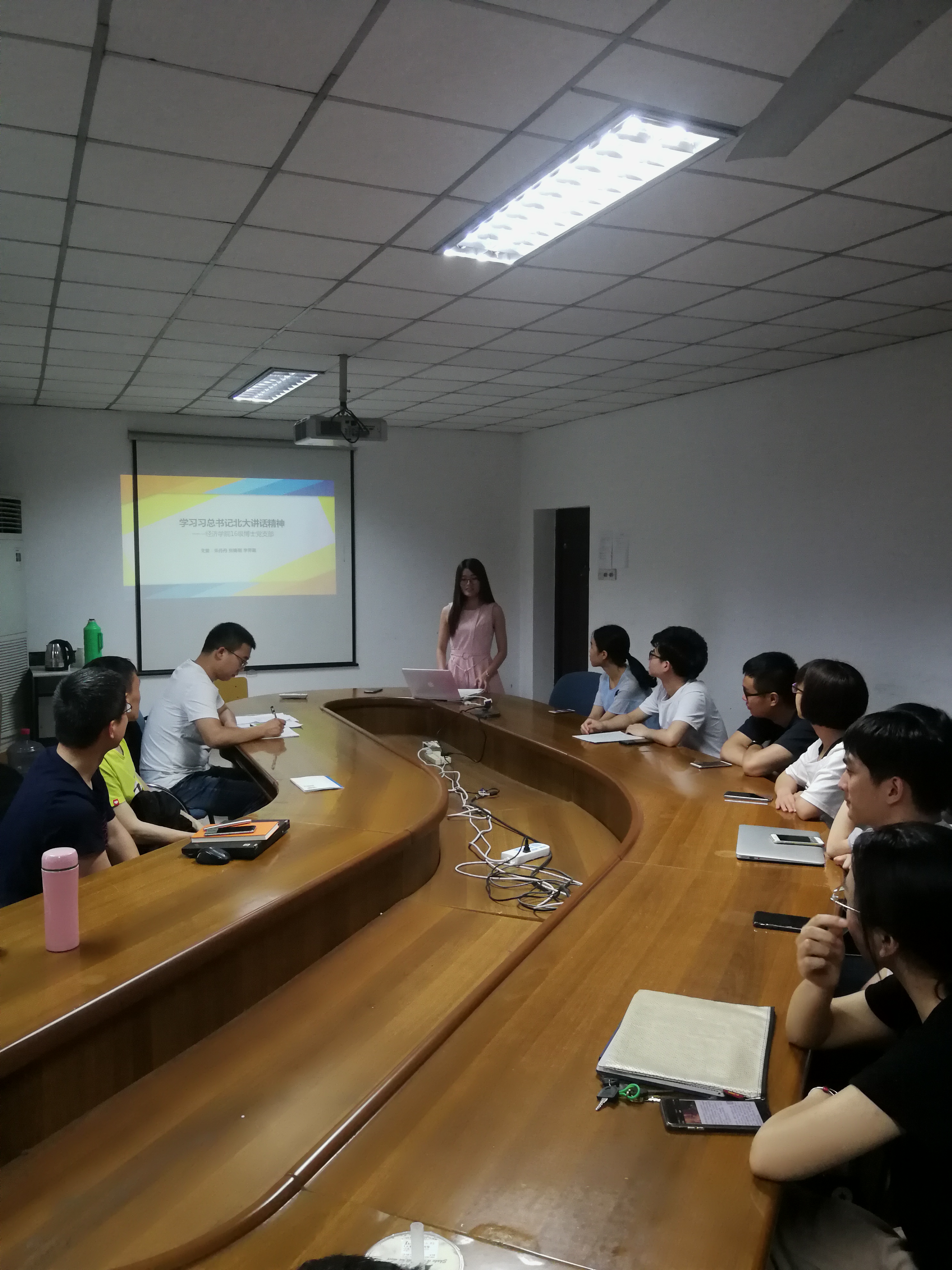 5月18日下午,经济学院2016级博士党支部在外经贸楼310会议室,召开专题民主生活会,学习“习近平总书记在北京大学师生座谈会上的重要讲话”精神。党支部全体在校党员、预备党员参加,会议由支部书记朱丹丹主持。