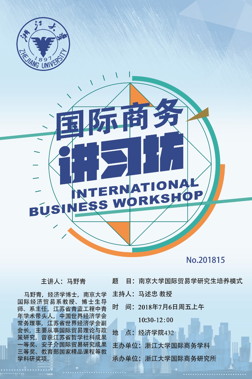 国际商务讲习坊No.201815:南京大学国际贸易学研究生培养模式