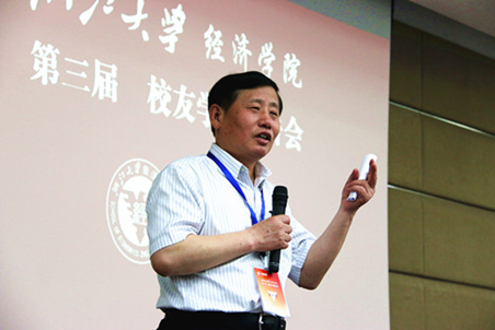王义中教授致开幕词,他介绍了经济学院近年来在教学科研等方面取得的成就,对广大校友的到来表示热烈欢迎,期待各位校友畅所欲言、共商学术、畅叙友情。