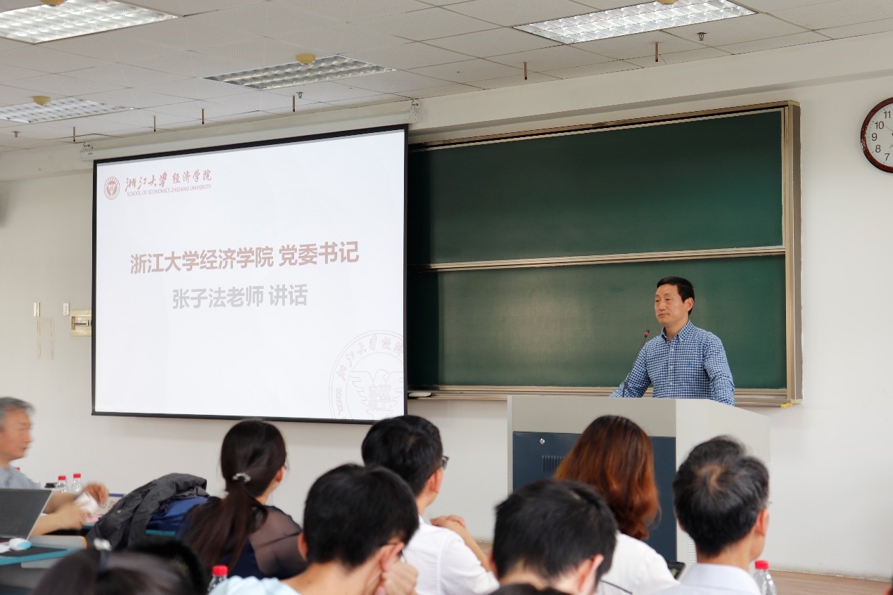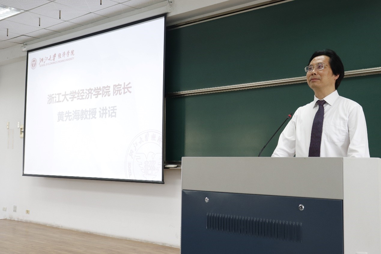 大会伊始,经济学院院长黄先海教授发表了激情昂扬的讲话。黄院长代表学院全体老师对18级同学们的到来表达了热烈的欢迎。黄院长首先介绍了经济学院在近几年取得的辉煌成就,在经院师生的不懈努力下,浙大经院的学科实力稳步提升,学院在2018年度泰晤士高等教育世界大学经济学与商科排名中位居全球前100名,学院经济学与金融学在最新的QS学科排行榜上双双进入世界前100名。而今后五年,学院的目标是让浙江大学经济学和金融学双双迈入世界前50位。黄院长希望广大师生能够携手奋进,向世界一流经济学院的目标迈进。最后,黄院长也向18级全体学生提出了两个要求,一是要铭记“执善向上,经世济民”的院训;二是砥砺奋进,追求卓越,培养高尚的情操,成为一个对国家、对社会有贡献的人。