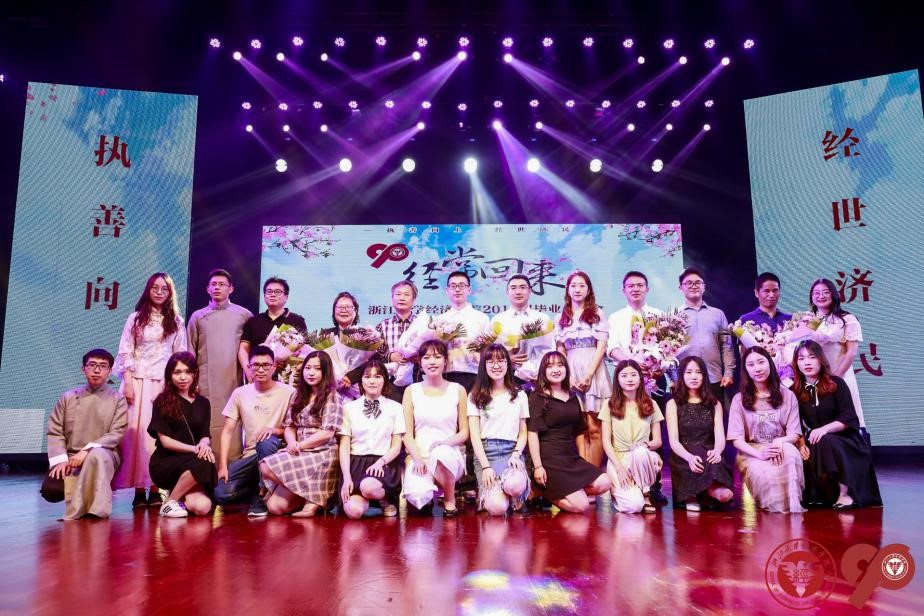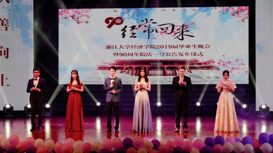 在众人齐唱的浙江大学校歌中,经济学院2019届毕业生晚会暨90周年院庆一号公告发布仪式落下了帷幕。
