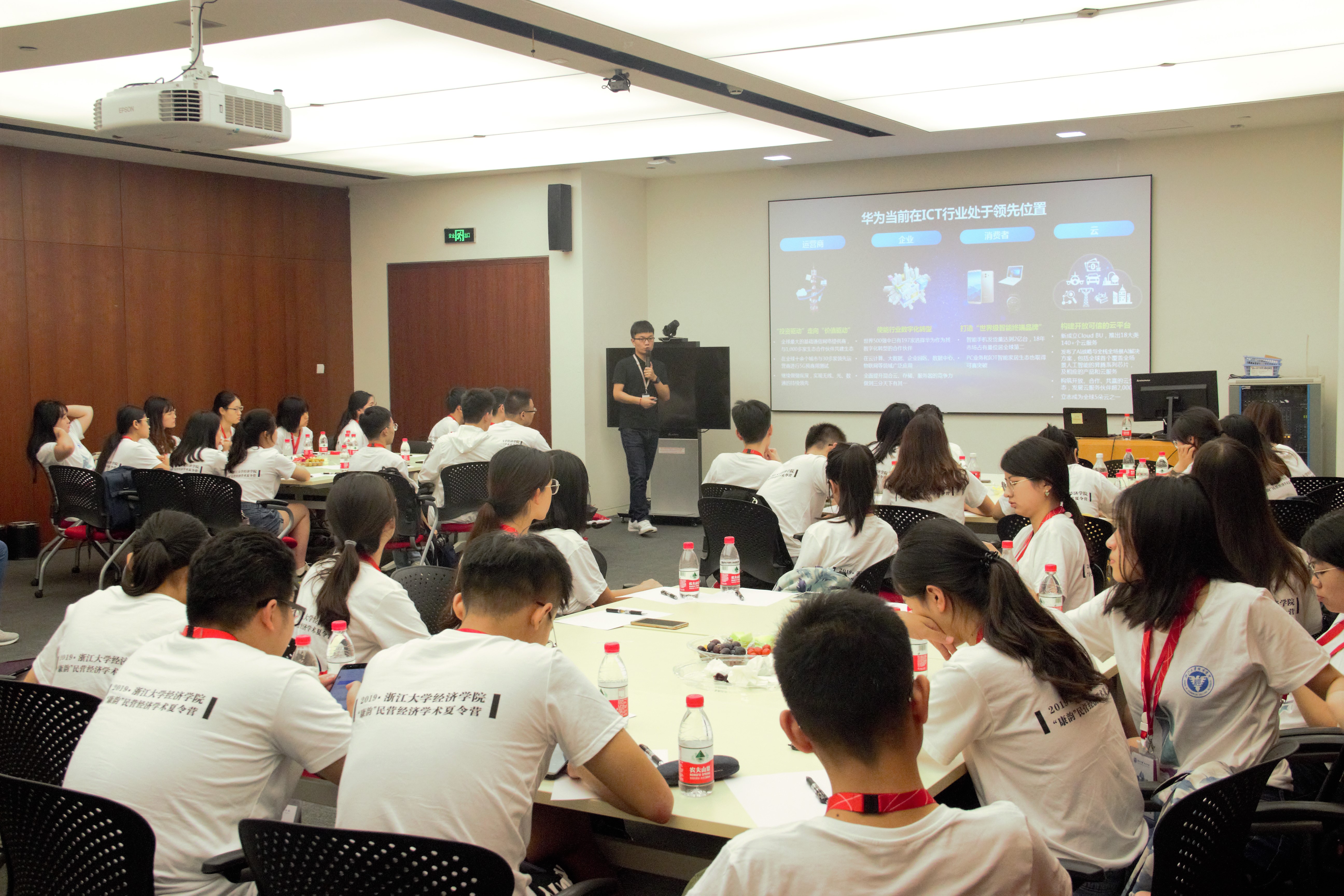 7月6日下午,营员们抵达位于杭州滨江区的华为杭州研发中心。华为公司HR为营员们介绍了华为公司的相关情况并带大家参观了华为数字化展厅。同学们亲自体验了华为的高科技产品,对华为世界领先的ICT技术有了更为直接、深刻的认识和了解。而后华为财经向营员们讲述了华为财经在华为发展过程中的助推作用,并向营员们介绍了华为财经的部门构成、主要业务、发展情况,向营员们展现了华为公司技术之外的独特魅力。