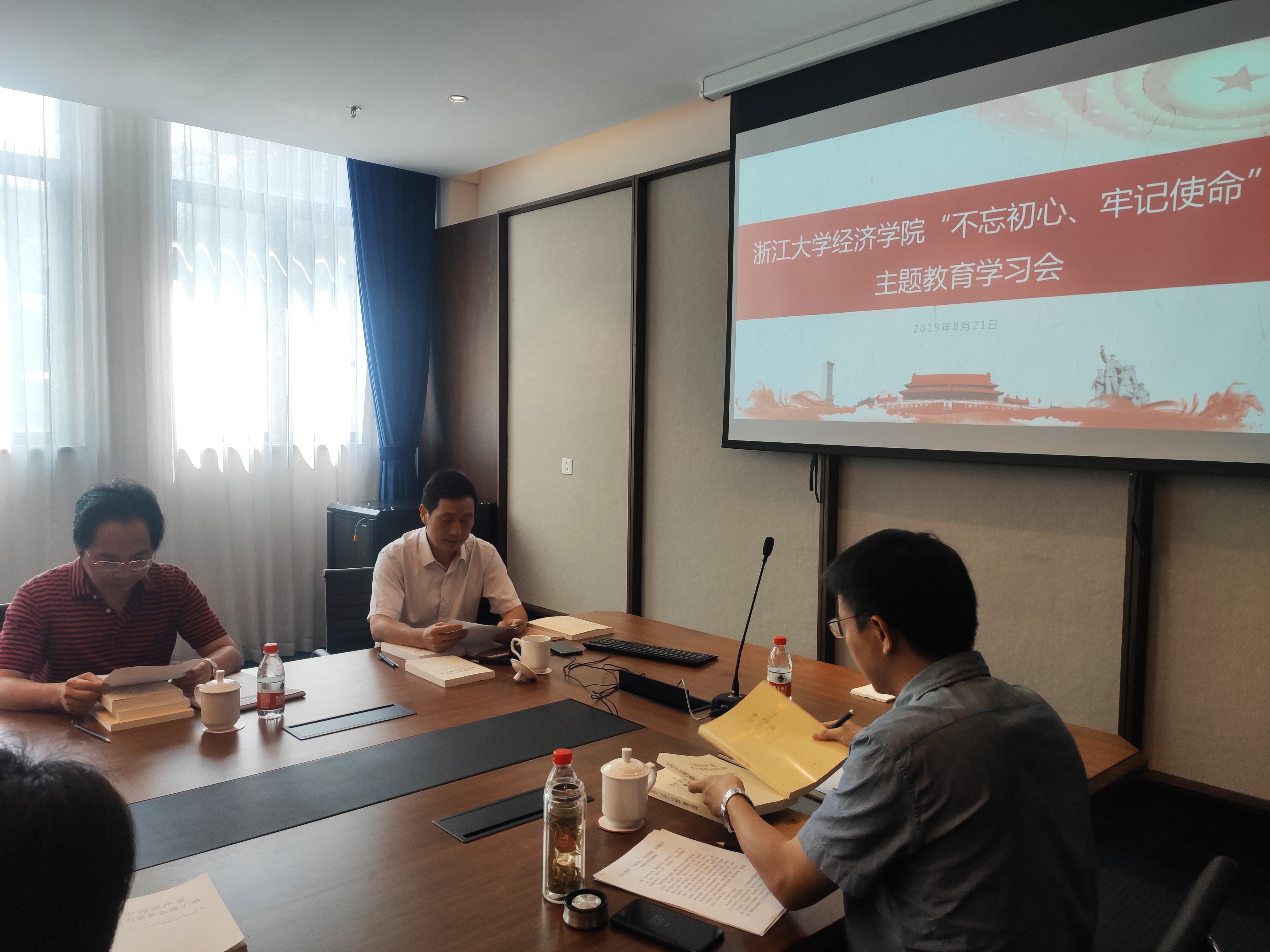 237 为认真贯彻习近平总书记在“不忘初心、牢记使命”主题教育工作会议上的重要讲话精神,贯彻落实《中共浙江省委关于开展“不忘初心、牢记使命”主题教育的实施意见》要求,根据学校党委部署,2019年8月20日-21日,经济学院 “不忘初心、牢记使命”主题教育学习会暨暑期务虚会在浙江大学海宁校区顺利召开。
