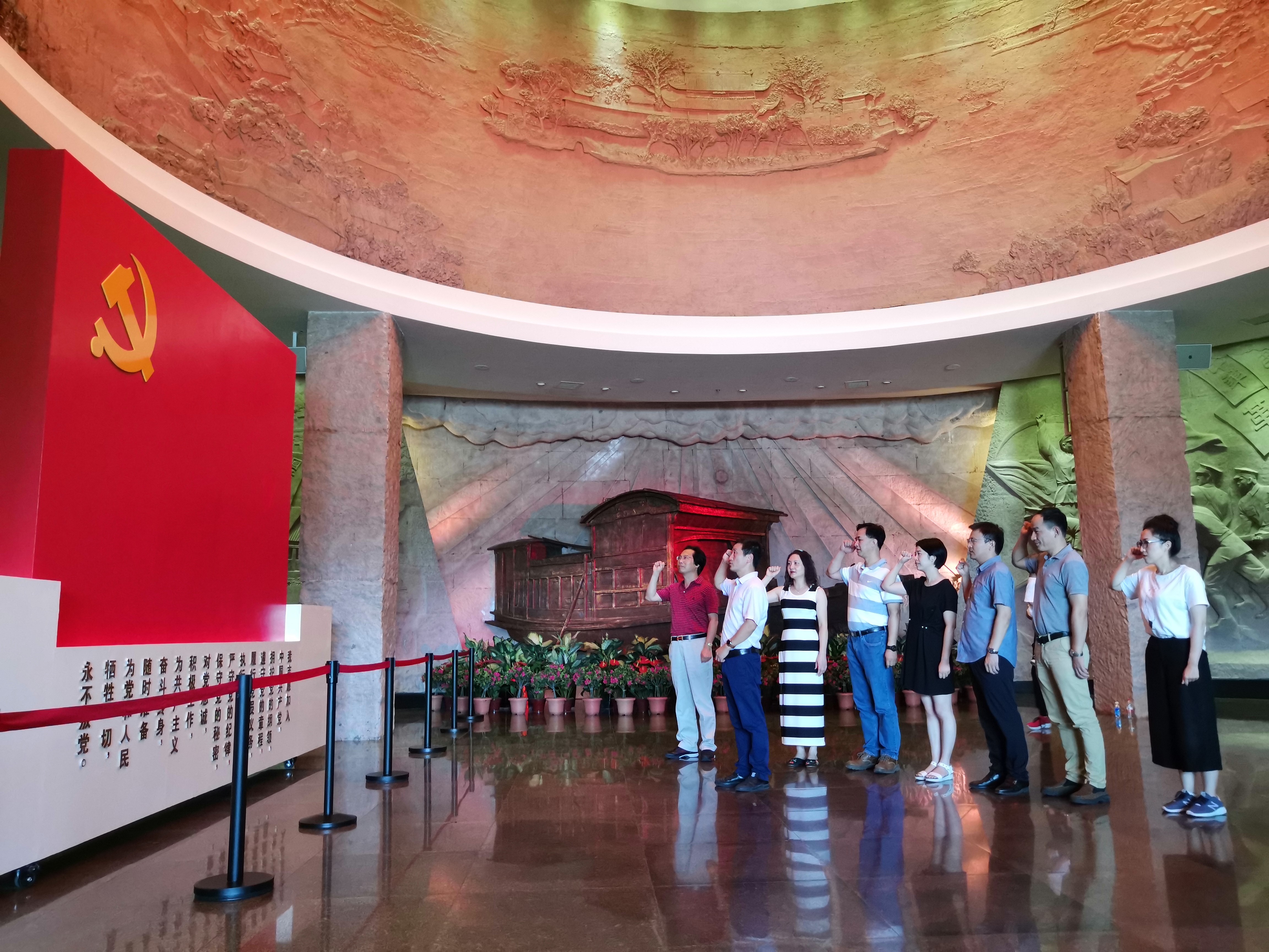 8月21日下午,学院一行赴嘉兴南湖实地学习“红船精神”并参观南湖革命纪念馆。走入南湖纪念馆,全体成员来到南湖革命纪念馆宣誓墙前,在张子法的领誓下,重温入党誓词,牢记使命担当。整个纪念馆分三个楼层,以图片、影像、文史资料等回顾了我们党从诞生到带领全国各族人民争取民族独立和解放、从改革开放到进入发展新时代的光辉历程。在结束纪念馆的参观后,全体成员还乘船至湖心岛,集体瞻仰了南湖红船。