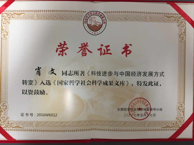 《科技进步与中国经济发展方式转变》是肖文教授主持的国家社科基金重大项目研究成果,2018年由人民出版社出版。该书是我院迄今唯一入选国家哲学社会科学成果文库的著作,亦是肖文教授第三本被列入国家社科基金中华学术外译项目的著作。