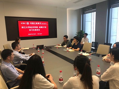 在工商银行浙江省分行,人力资源部总经理徐小宙接待了我院一行。疫情的原因,今年工行采取线上实习的方式,学生利用线上的机会得到了更全面的培训,对工行的历史和文化也有了较为深刻的了解。座谈会上,徐小宙总经理、卢飞霞副书记和同学们探讨分享了经济学人才的职业规划,并对进一步结合学生需求,加强院企之间的合作对接达成共识。