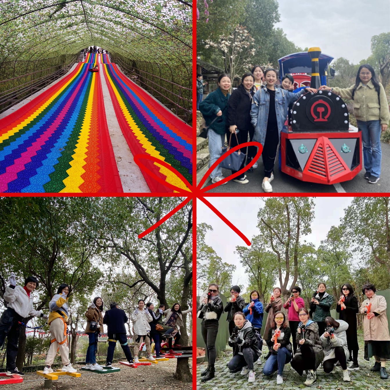 饭后,丽人们漫步在鸟语花香中,并分头体验了刺激的户外拓展项目,“丛林探险”、“小火车”、“彩虹滑道”、“CS对战”等,场上到处穿梭着丽人们矫健的身影,透露出学院女教师巾帼不让须眉的气概。