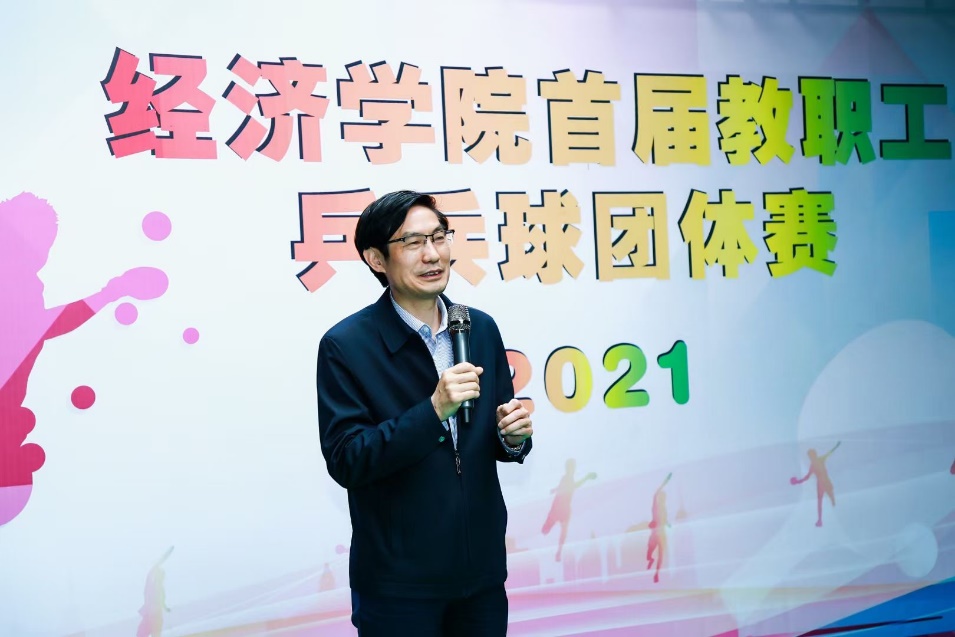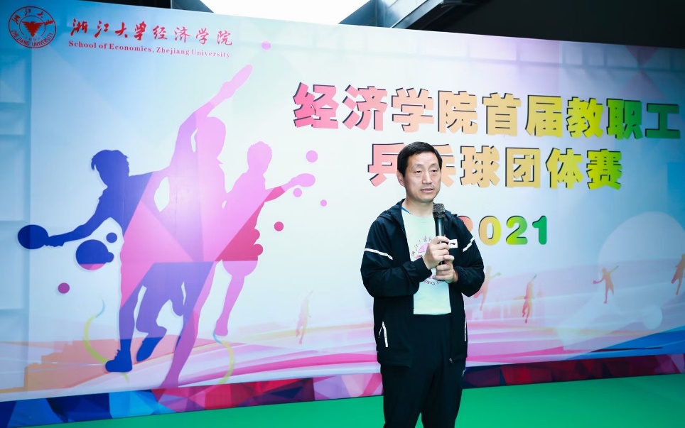 218 为了推进“五济工会”文化建设,进一步加强学院教师间交流,丰富教职工的业余文体生活,尽力打造教职工信赖的教工之家,2021年4月2日,经济学院首届教职工乒乓球团体赛在学院顶楼乒乓球活动中心顺利举行,学校党委常委、校工会主席楼成礼,紫金港校区党工委书记、管委会主任罗长贤,校工会办公室主任张鸯,经济学院院长张俊森,文科资深教授史晋川,党委书记张子法,副院长郭继强、方红生,党委副书记卢飞霞,学院工会主席郑备军,副主席宗晔莅临现场,来自学院5个系、院机关和高培中心共7支代表队近50名乒乓健儿参加了本次比赛。