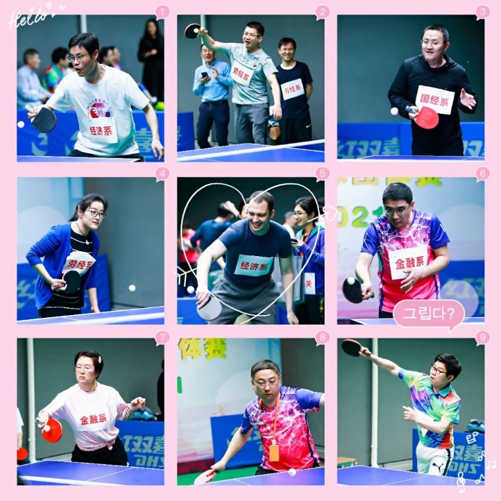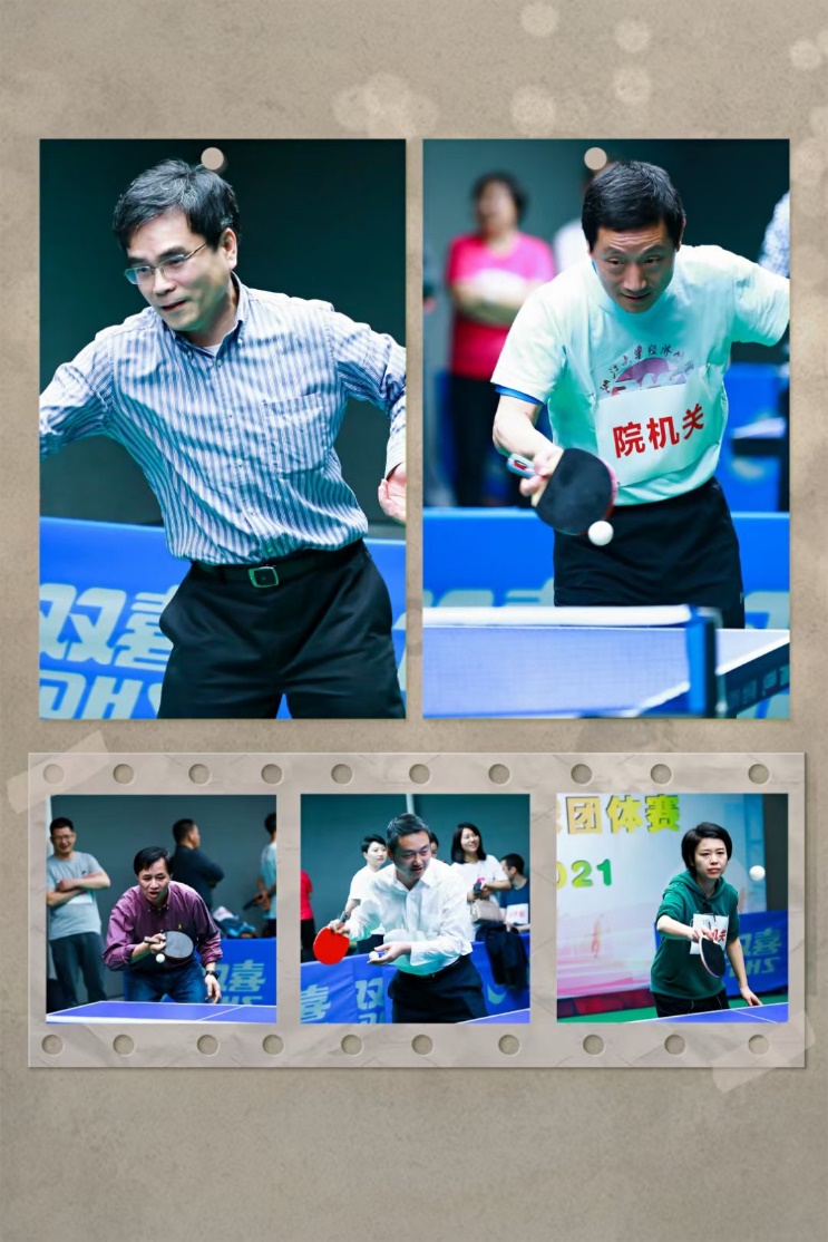 本次比赛也作为学校2021年乒乓球选拔赛,采用循环赛制,分为男子单打、女子单打、混合双打、男子双打和男子单打五个项目,每位选手都有充分展示自己的机会。有的系几乎全员上阵,有的系女队员当男队员用,有“一百年都没握球拍”的老师也上阵开挂了,“乒乒,乓乓”,乒乓球在台上来回转动,场上运动员不断变化着战术和打法,或精准进攻,或巧妙防守,现场精彩不断,旋球、扣球、搓球,身法腾挪间以球会友,退挡来往间切磋球技,充分展示了教职工们拼搏进取的体育精神。德籍教师Wolf Gang重现波尔风采,披挂上阵与女老师打起了女单比赛,引来台下啦啦队的阵阵欢笑与喝彩。
