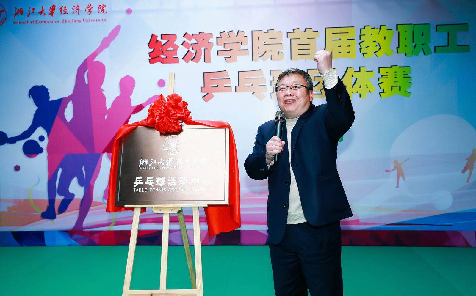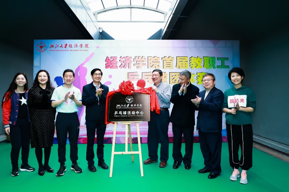 开幕式最后,史晋川、楼成礼、罗长贤、张子法、卢飞霞、郑备军、张鸯、宗晔为经济学院“乒乓球活动中心”揭牌,现场响起热烈的掌声。
