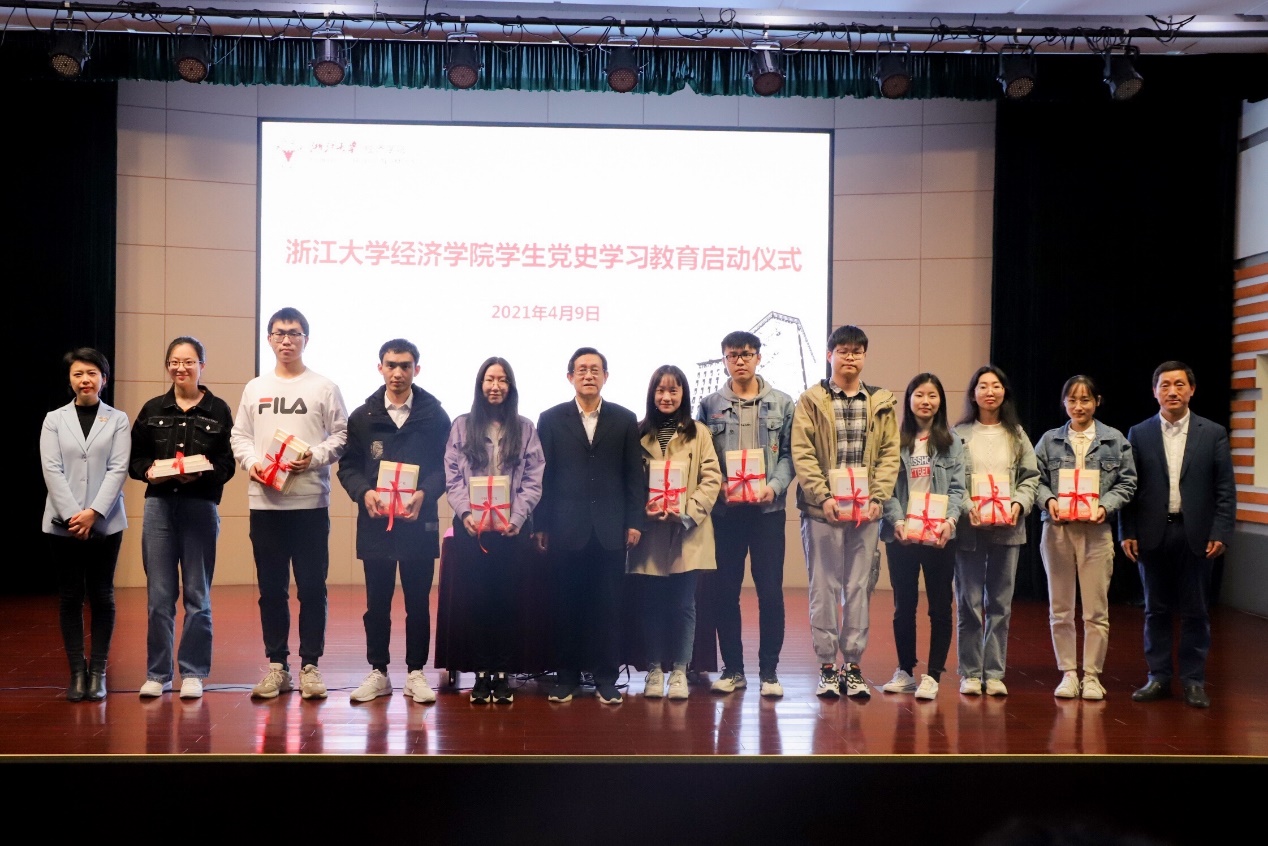 276 2021年4月9日下午,经济学院党史学习教育报告会暨2021年“先锋学子”第一次全员培训会于浙江大学紫金港校区临水报告厅举行。我院经济系1977级院友,原浙江省科学技术厅厅长、党组书记蒋泰维,浙江大学经济学院党委书记张子法出席活动并分别作主题报告。学校发展规划处党支部成员、学校青马学院学员代表、经济学院师生党员等参加本次活动,活动由经济学院党委副书记卢飞霞主持。