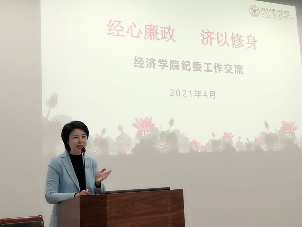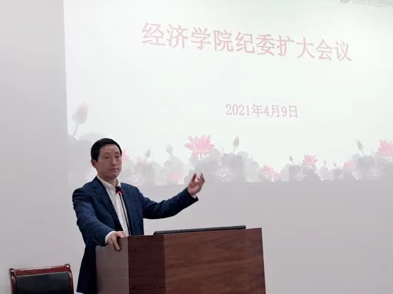 284 2021年4月9日,浙江大学经济学院召开纪委扩大会议,传达学习学校纪委2021年工作要点和学校纪委关于深入推进党史教育的通知,总结学院纪委工作,部署2021年工作任务。学院党委书记张子法出席并讲话,党委副书记、纪委书记卢飞霞主持会议。