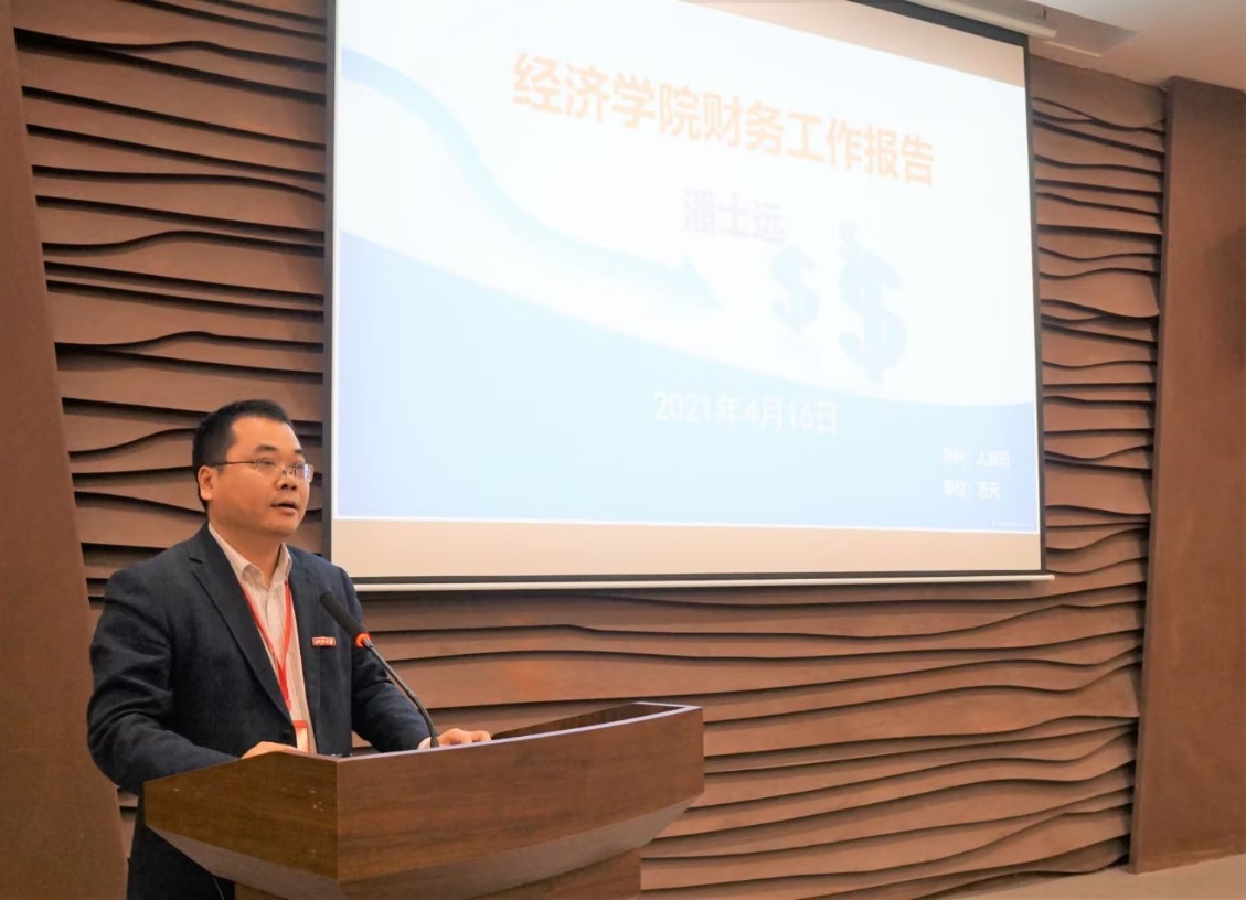 副院长潘士远汇报了2019、2020年度学院财务工作情况,对学院各项收入和支出作了报告,并展望了今后开源的增长点,以稳健的财力为学院发展提供强有力的支撑。