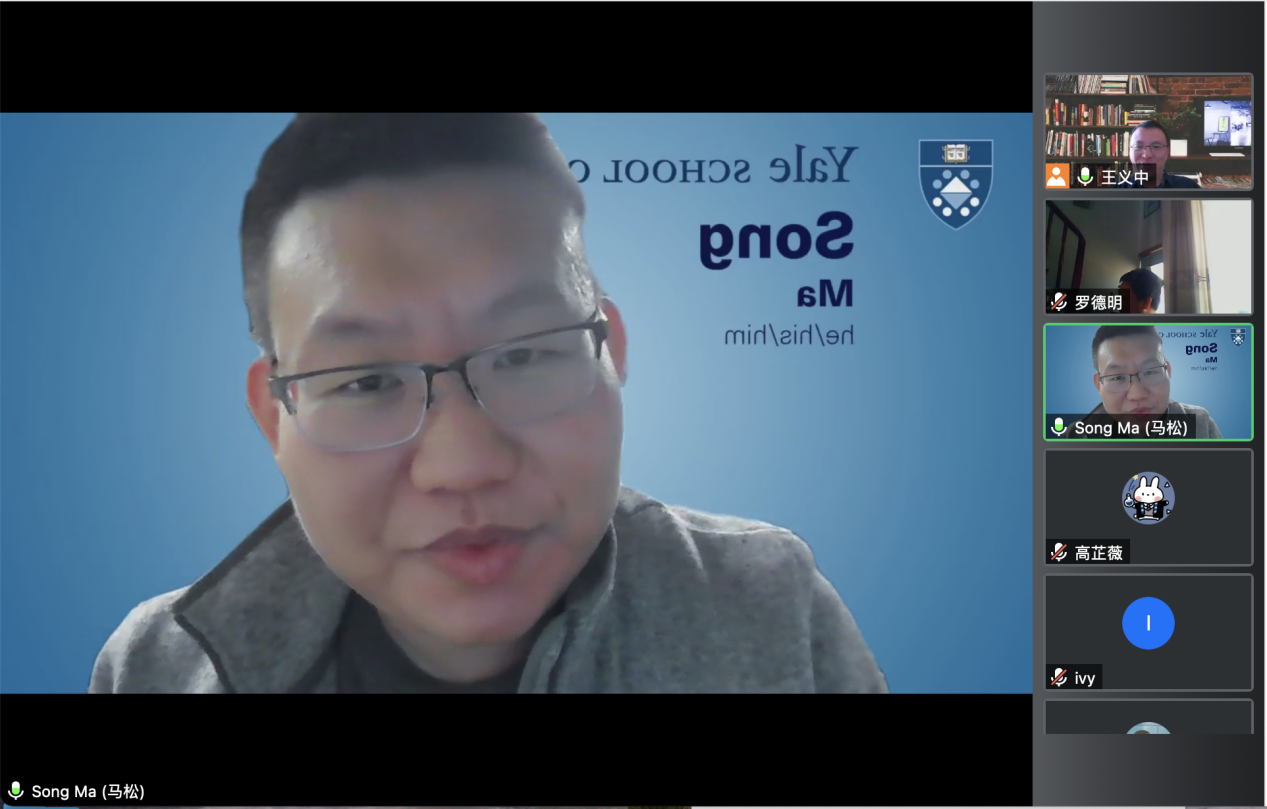 主题分享开始前,王义中副院长对马松教授表示热烈欢迎,并向参会师生隆重介绍了马松教授。马教授是耶鲁大学管理学院金融学助理教授,耶鲁大学法学院公司法研究中心以及耶鲁大学管理学院创业管理中心研究员,和美国国家经济研究局公司金融学部和生产力和创新学部研究员。马教授的主要研究兴趣是公司金融,创业金融(风险投资、私募股权),科技创新,产业组织,反垄断以及商法。他的研究成果发表于顶尖学术期刊,并获得过多项科研奖项和研究基金。他的研究也被世界各地的立法者和政策制定者引用,包括美国联邦贸易委员会、欧盟竞争委员会和英国竞争与市场管理局。他曾被华尔街日报、金融时报和纽约时报等数十家媒体引用或采访。马教授于2016年获得杜克大学金融学博士学位,同时被选为2016年全球最佳金融学博士毕业生。2010年毕业于浙江大学(竺可桢荣誉学院)并被授予经济学学士学位。