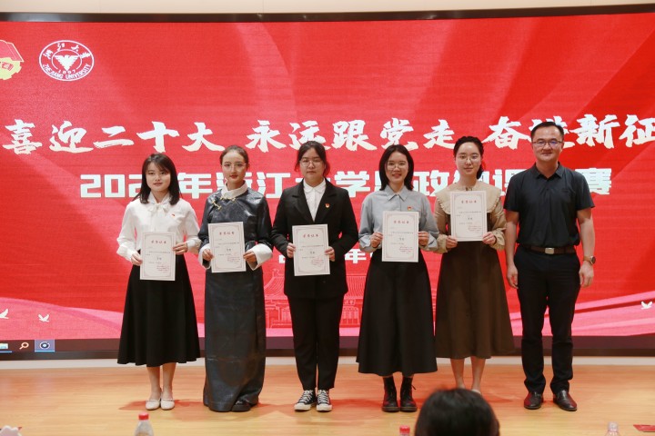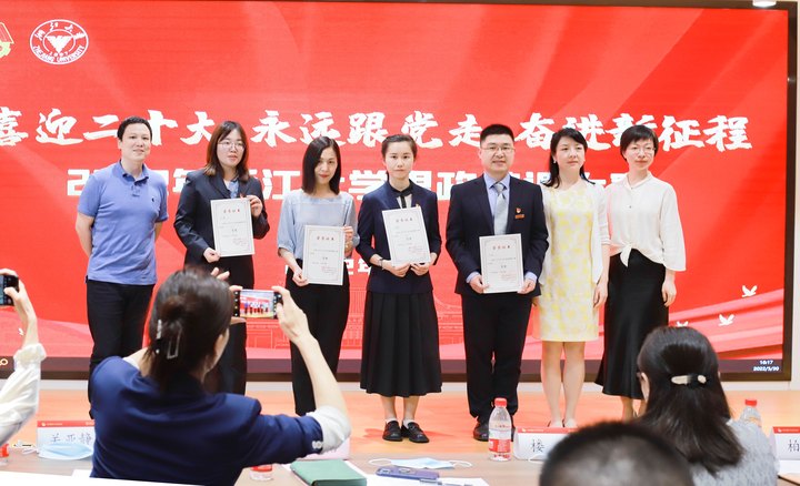 469 5月30日,2022年浙江大学“喜迎二十大 永远跟党走 奋进新征程”思政微课大赛决赛暨思政公开课在紫金港校区尧坤楼举行。思政微课大赛自2月启动以来,经过视频复选,从98个作品中遴选出15名教师和15名学生进行思政公开课直播展示。我院辅导员沈艳、2019级经济学专业本科生周紫璇晋级决赛,分别获教师组二等奖、学生组二等奖与人气奖。