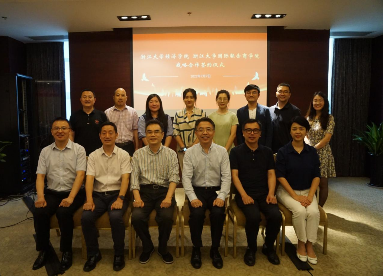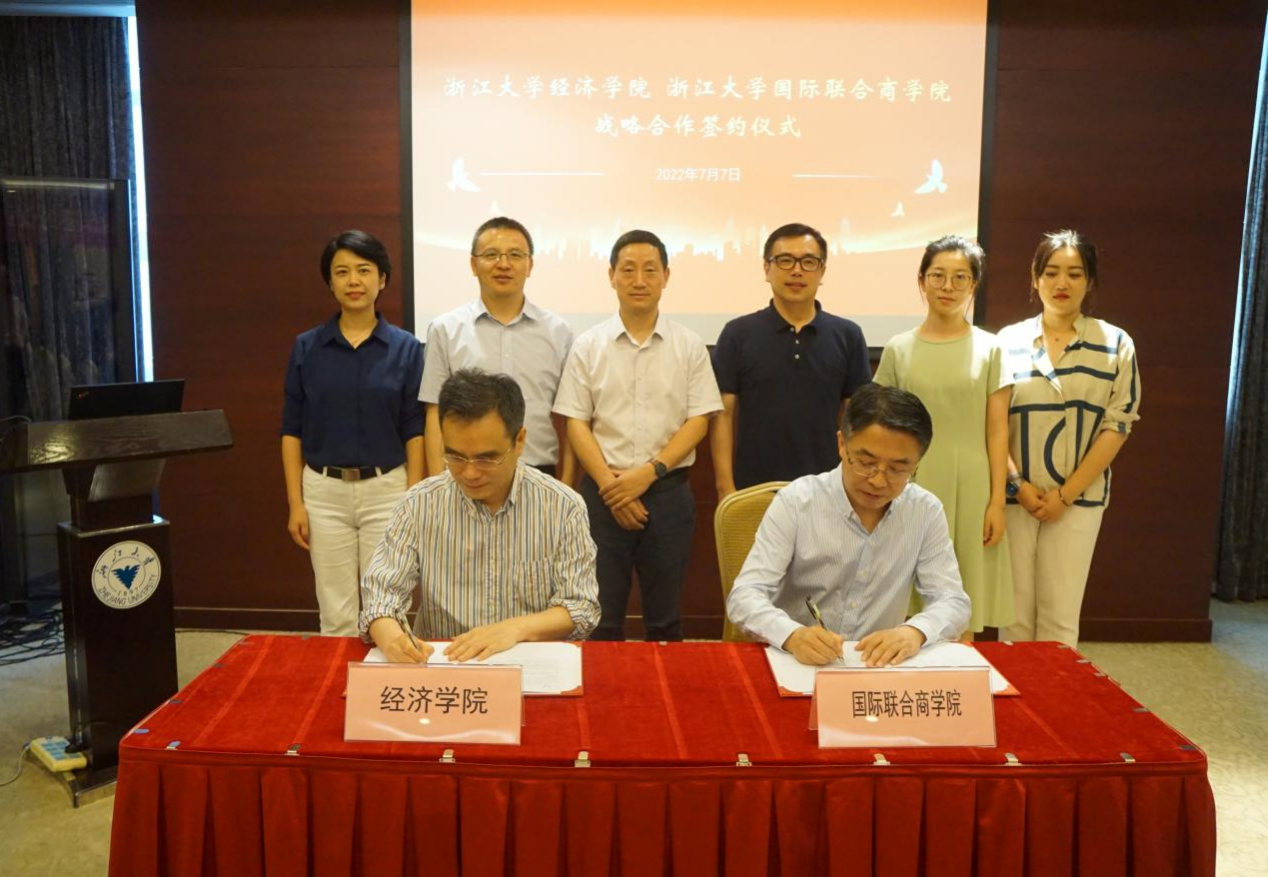 330 2022年7月7日下午,经济学院与国际联合商学院战略合作签约仪式在浙江大学紫金港校区举行。经济学院、国际联合商学院领导班子及相关科室负责人出席了仪式。仪式由经济学院副院长王义中主持。