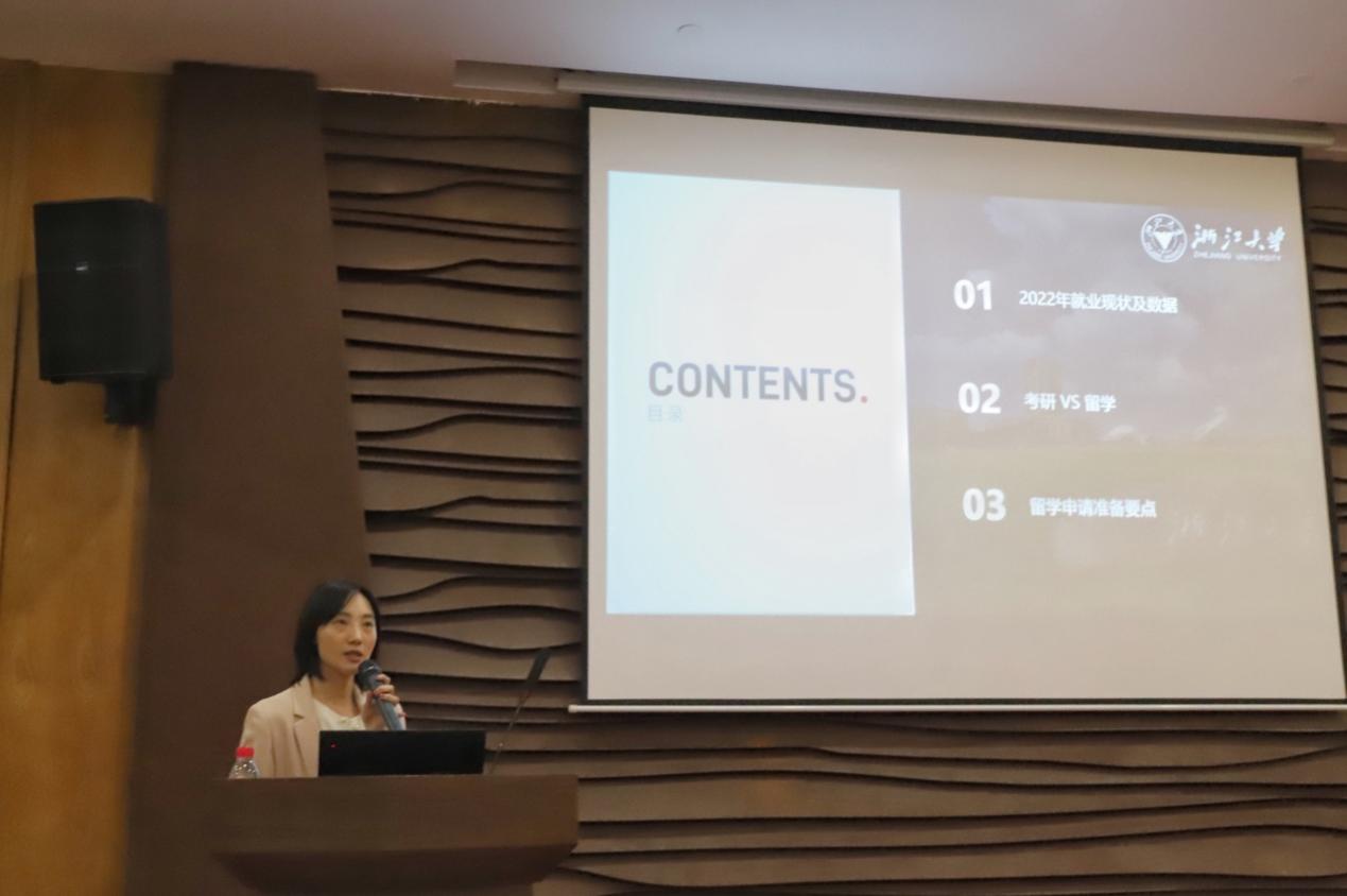 314 10月20日,浙江大学经济学院就业动员大会暨海外升学、考公选调专场宣讲会在经济学院120报告厅召开。学院团委书记王璐莎老师,团委副书记王赛男老师,700余名学生通过线上线下结合的方式参加本次会议。