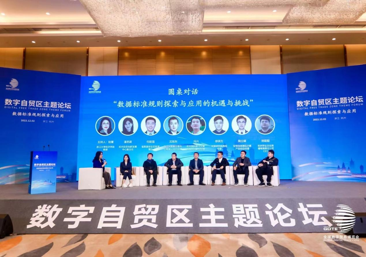 浙江大学经济学院陆菁教授主持“数据标准规则探索与应用的机遇与挑战”圆桌对话,邀请杭州自贸创新发展中心副主任潘思蔚、省数据安全实验室何能强博士、浙江大数据交易中心有限公司总经理沈旭东、杭州国际数字交易有限公司副总经理冯兴、阿里研究院高级专家徐琪方、安恒信息隐私计算产品部总经理陶立峰、杭州宇尘文化传播有限责任公司CEO林聪聪等嘉宾,围绕数据采集、存储、传输、交换、使用等全生命周期安全实施建议、数据要素在跨境贸易领域的价值体现、如何平衡数据的有效流通和安全治理、跨境贸易销售数据如何赋能产业链供应链、数据交易中的隐私保护等议题进行了讨论。