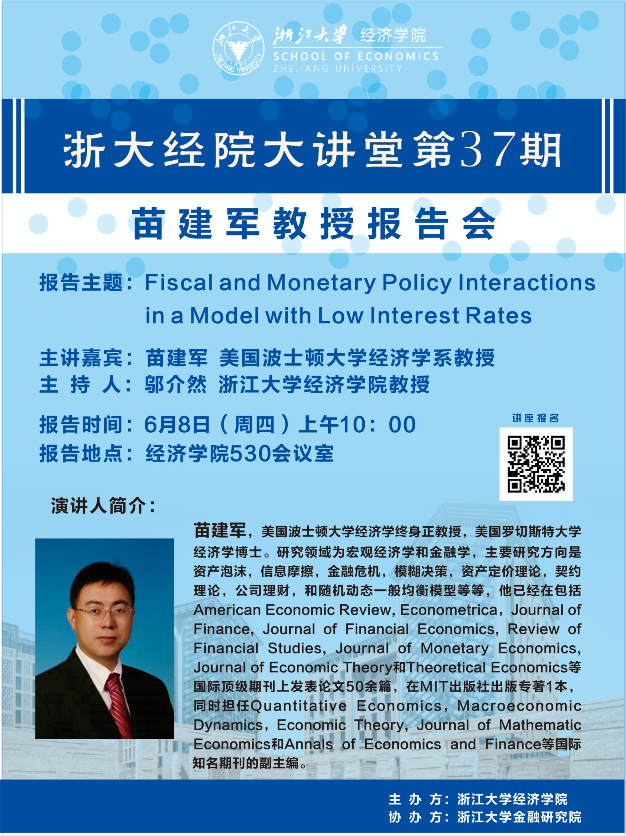 【浙大经院大讲堂第37期】苗建军:Fiscal and Monetary Policy Interactions in a Model with Low Interest Rates