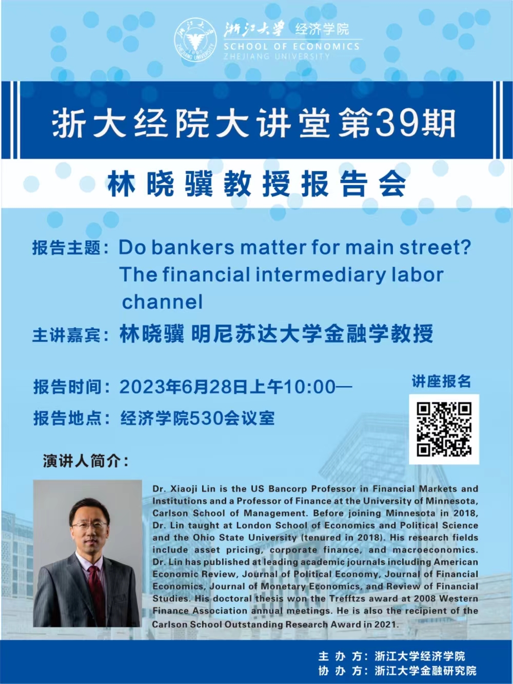 【浙大经院大讲堂第39期】林晓骥:Do bankers matter for main street? The financial intermediary labor channel