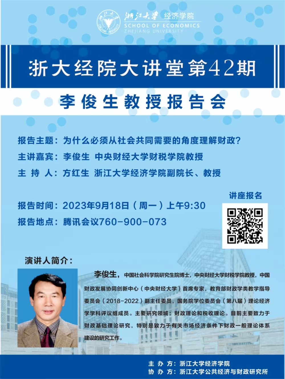 【浙大经院大讲堂第42期】李俊生:为什么必须从社会共同需要的角度理解财政?