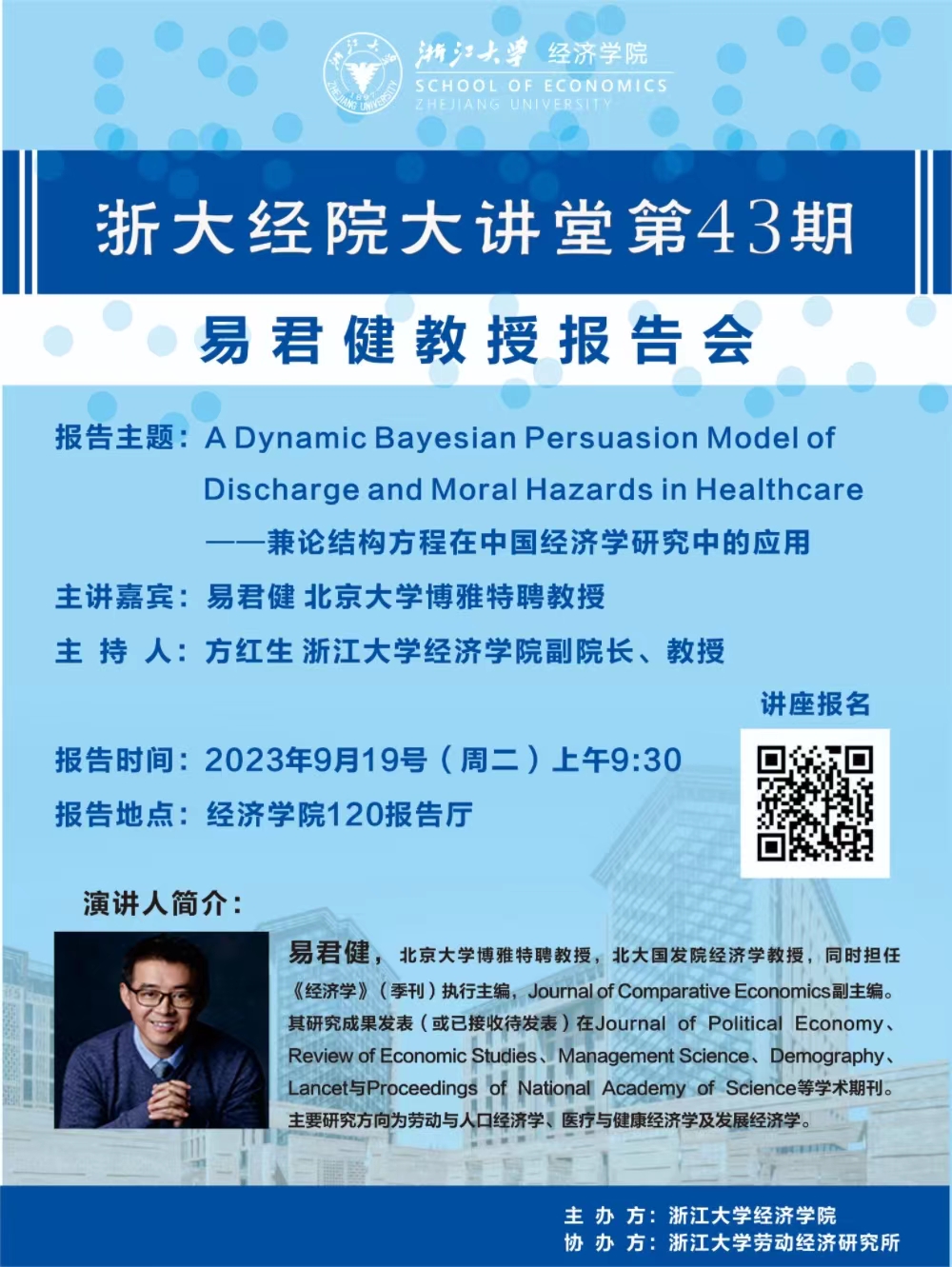 【浙大经院大讲堂第43期】易君健:A Dynamic Bayesian Persuasion Model of Discharge and Moral Hazards in Healthcare——兼论结构方程在中国经济学研究中的应用