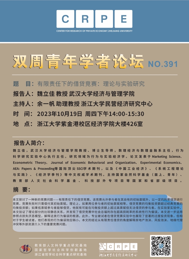 CRPE双周青年学者论坛 NO. 391 报告人:魏立佳