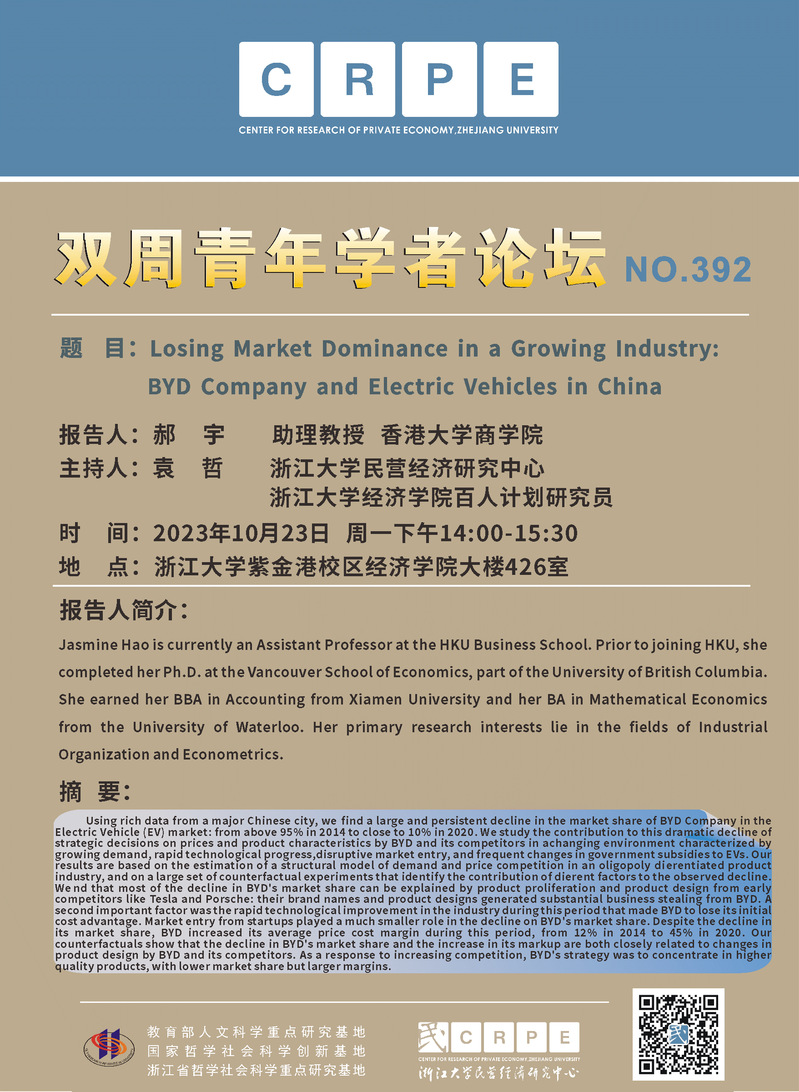 CRPE双周青年学者论坛 NO. 392 报告人:郝 宇