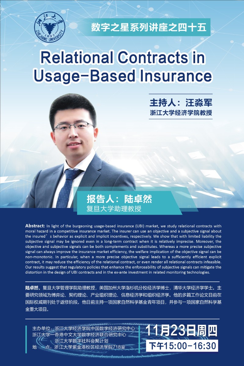 [数字之星系列讲座之四十五]陆卓然:Relational Contracts in Usage-Based Insurance