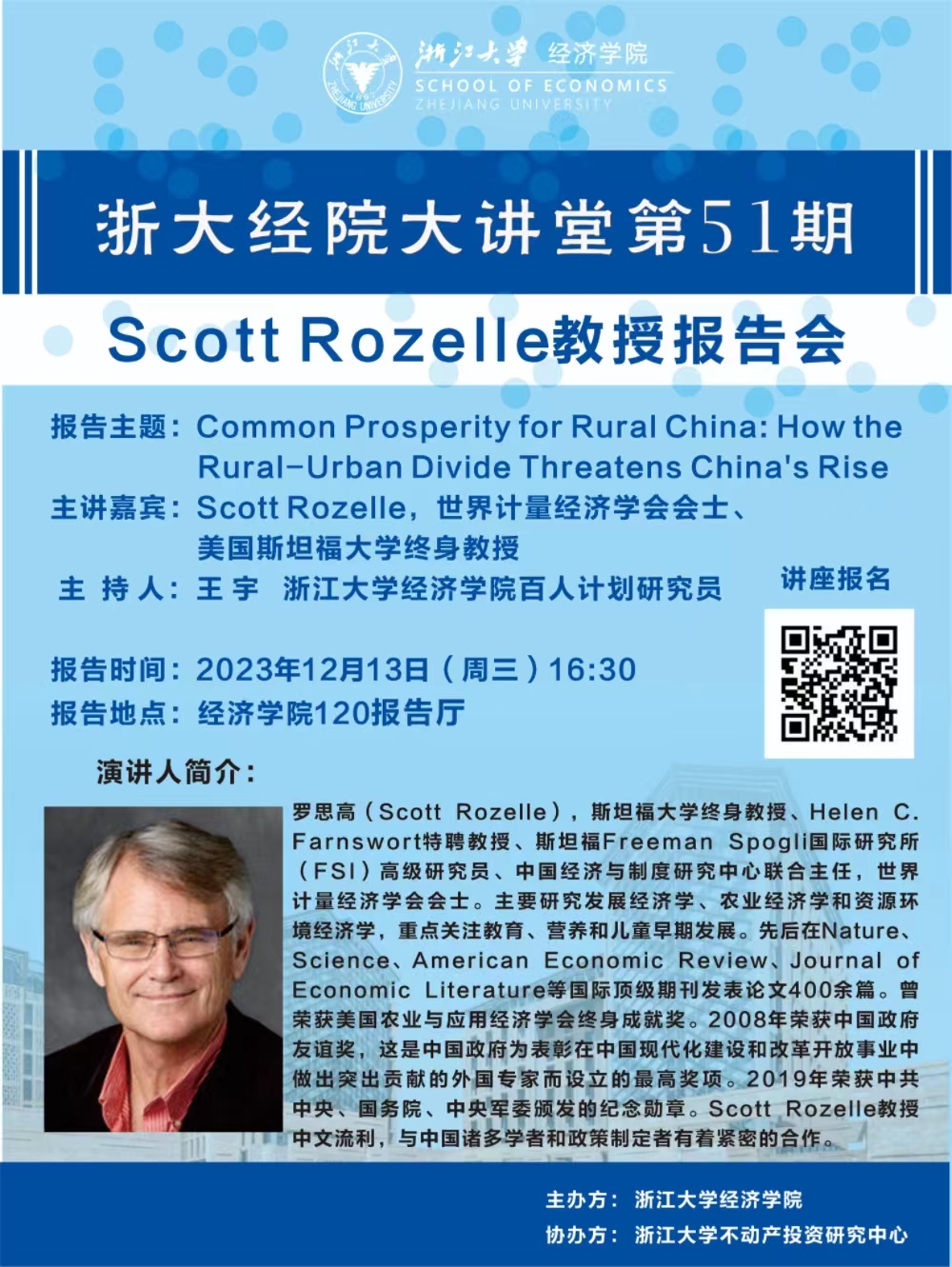 【浙大经院大讲堂第51期】Scott Rozelle: Common Prosperity for Rural China: How the Rural-Urban Divide Threatens China’s Rise