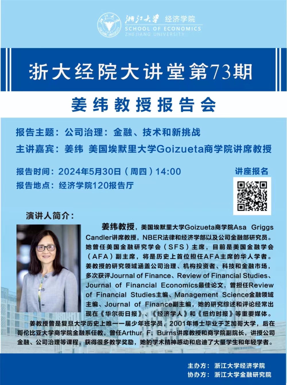 【浙大经院大讲堂第73期】姜纬:公司治理:金融、技术和新挑战