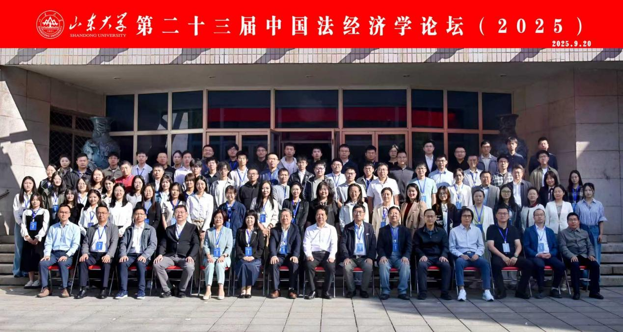 第二十三届(2025年度)中国法经济学论坛于2025年9月20-21日在山东大学成功举办。本届论坛由山东大学经济研究院、浙江大学经济学院主办。来自清华大学、北京大学、浙江大学、复旦大学、上海交通大学、中国人民大学、山东大学、中山大学、香港中文大学、中国政法大学等海内外著名高校的70多位专家学者或法律实务工作者参加了本次论坛。山东大学副校长曹现强和浙江大学文科资深教授史晋川在开幕式上致辞,开幕式由山东大学经济研究院副院长韦倩教授主持。