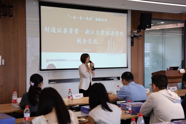为深化专业硕士实践教学,洞察金融前沿动态,2025年9月26日,浙江大学经济学院组织金融专业硕士研究生赴上海参访和现场教学,全体师生走访了财通证券资产管理有限公司(以下简称“财通资管”)和上海证券交易所两家校级实践基地。