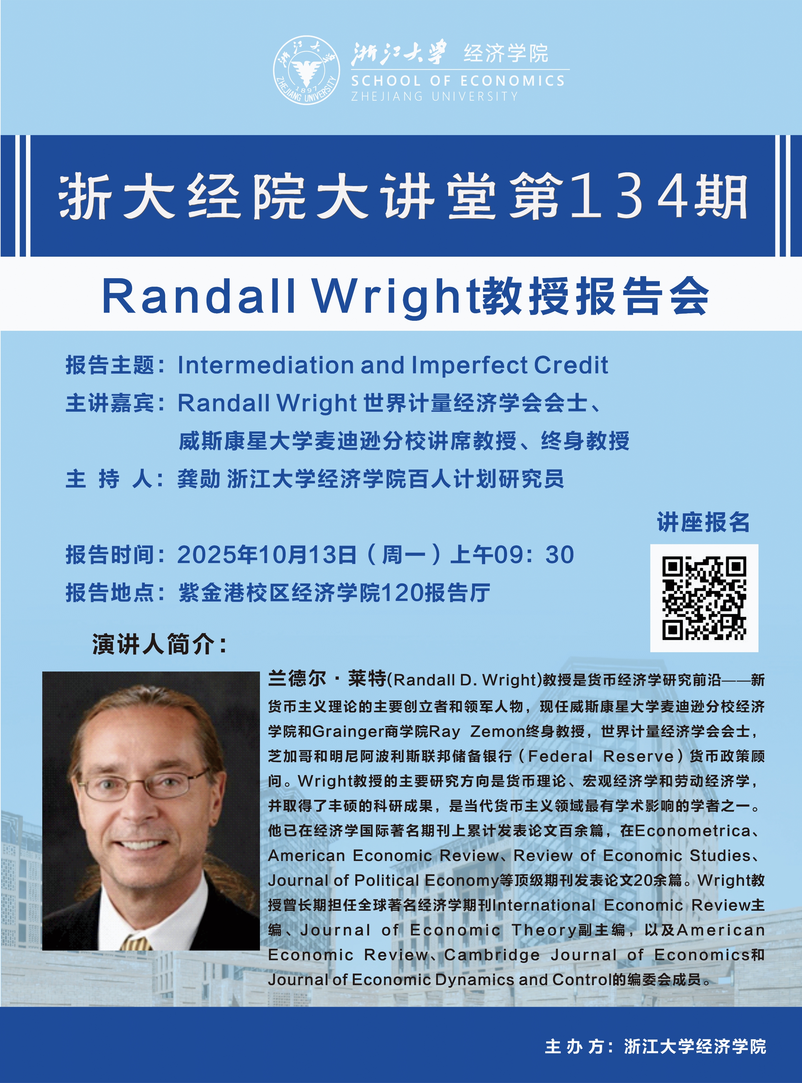 【浙大经院大讲堂第134期】Randall Wright:Intermediation and Imperfect Credit