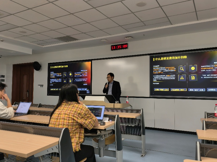 本次讲座中,罗思维先生深入浅出地讲解了研发费用加计扣除政策的核心要点,更通过丰富案例与实务经验的分享,深化了同学们对研发活动界定、研发费用核算口径等问题的理解。讲座结束后,罗思维先生还耐心解答了同学们的问题,同学们收获满满。