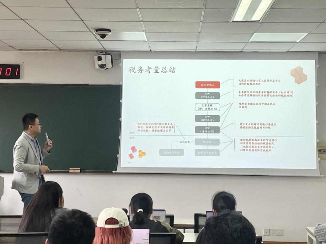10 2025年10月22日下午,普华永道中国税务合伙人郭迪昇先生受康笛副教授邀请,在浙江大学紫金港校区西教学楼2-516进行了“浙江大学税务专硕学位建设系列讲座”第53期讲座,主题为“企业境外上市及海外投资并购”。
