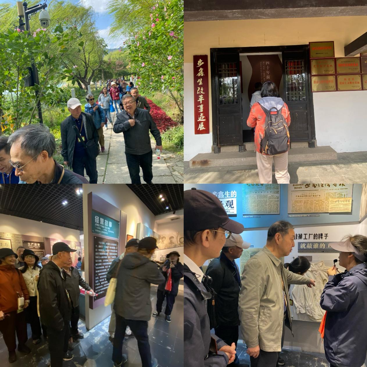 首站来到南北湖景区,老师们走在青山绿水环绕的林荫大道上,倍感身心愉悦。大家参观了步鑫生改革事迹展,展厅内,泛黄的工作笔记、服装成品样衣、改革过程照片,生动还原了步鑫生推动企业改革、打破 “大锅饭” 的历程。作为经济领域的退休老师们,看到改革先驱的实践足迹,更加体会到了改革开放对基层发展的深远意义。大家沿湖而行,碧波荡漾间白鹭翩飞,环湖绿道串联起特色民宿与生态农庄,老师们不时驻足打卡拍照,热议生态保护与经济发展的融合之道。