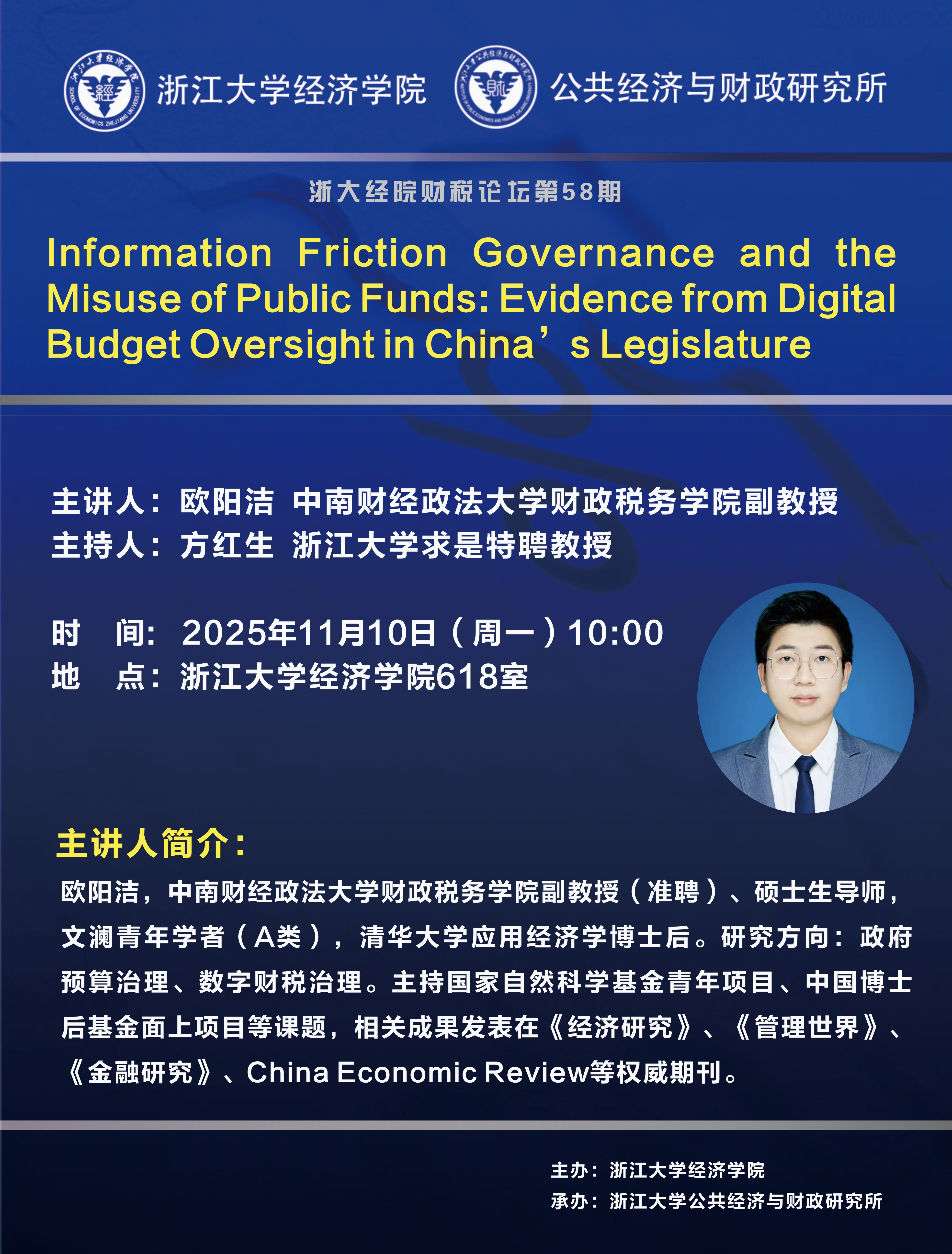 欧阳洁:Information Friction Governance and the Misuse of Public Funds: Evidence from Digita Budget Oversight in China’s Legislature