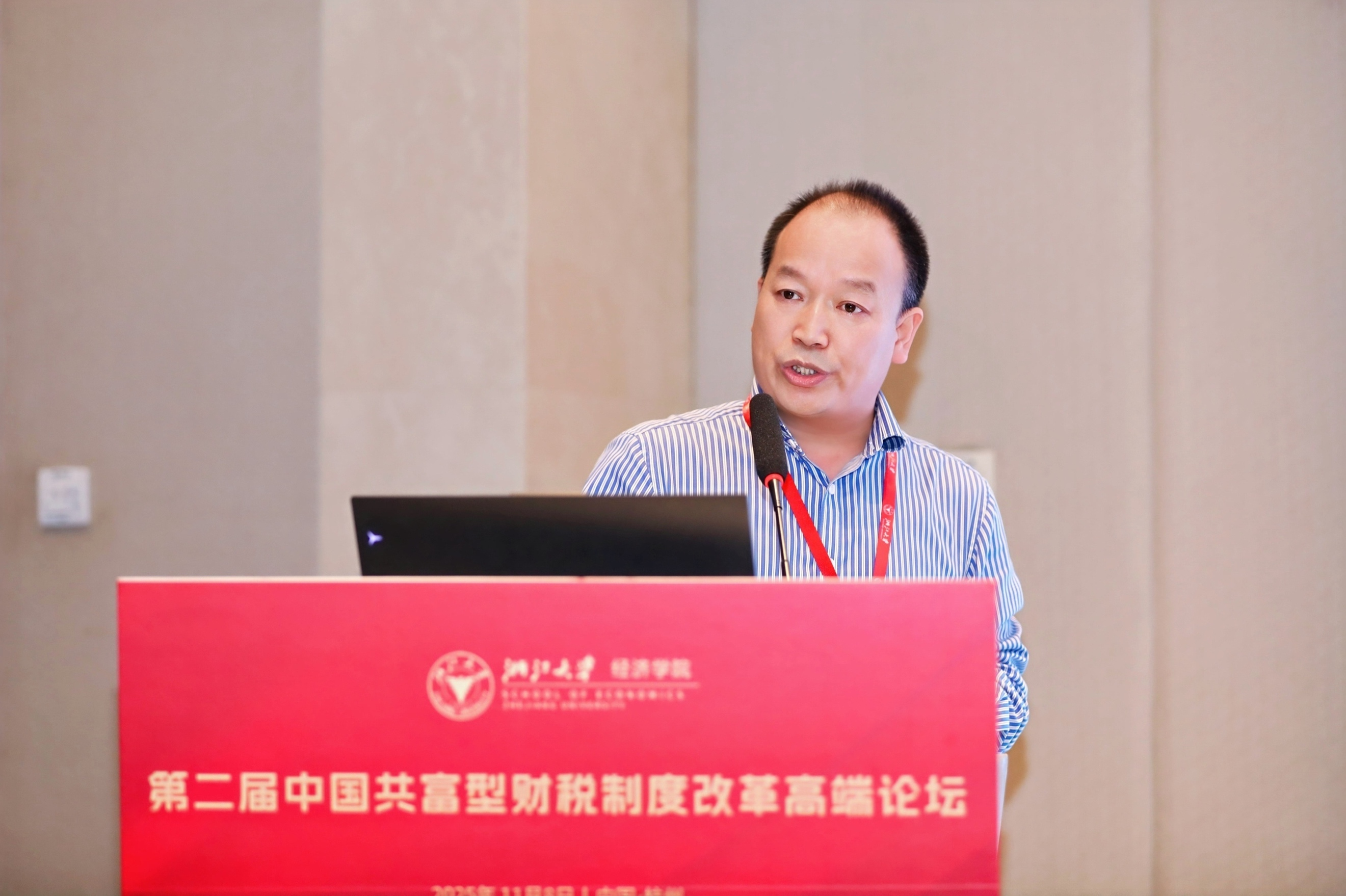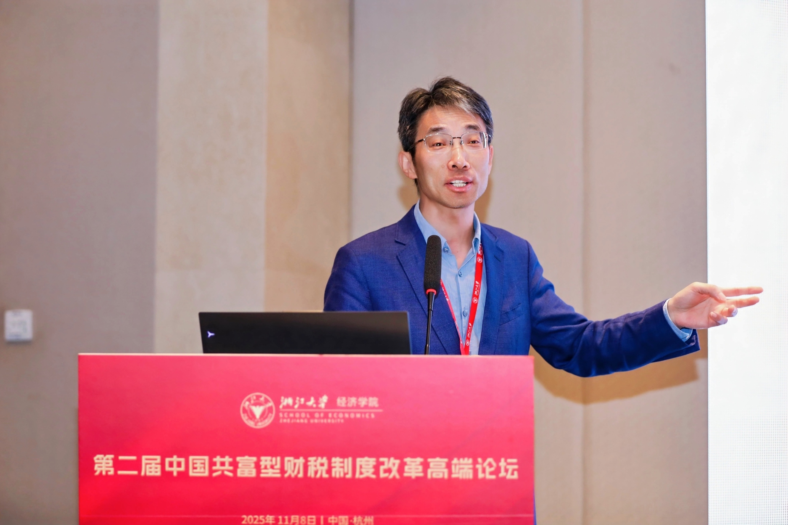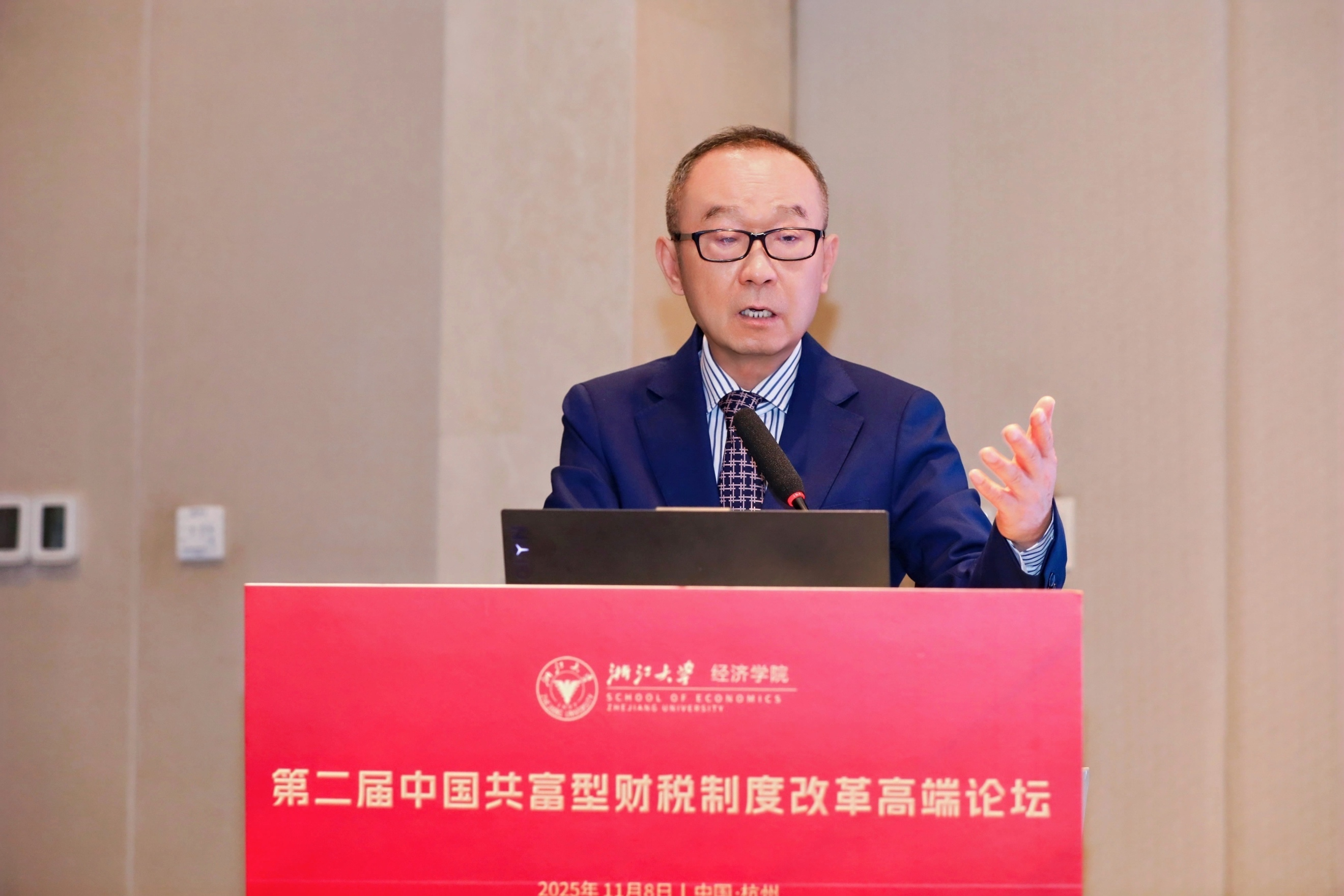 11 2025年11月8日,第二届中国共富型财税制度改革高端论坛在杭州西溪宾馆成功举办。本次论坛由浙江大学经济学院主办,浙江大学不动产投资研究中心、浙江大学公共经济与财政研究所协办,并得到浙江大学开放型经济与发展优势特色学科和国家社会科学基金重大项目“有利于共同富裕的税收制度改革研究”的支持。主旨演讲嘉宾有复旦大学经济学院院长、国家一级教授张军,江西财经大学原党委书记、原校长王乔,浙江财经大学原副校长、教授、山东大学讲席教授李永友,山东财经大学党委副书记、教授谢申祥,安徽财经大学副校长、教授储德银,海南大学学术副校长、特聘教授张克中,对外经济贸易大学政府管理学院院长、惠园特聘教授李明,山东大学经济学院常务副院长、泰山学者特聘教授石绍宾,浙江大学求是特聘教授方红生(按演讲顺序)。本次论坛由浙江大学求是特聘教授方红生和浙江大学经济学院财政学系主任、教授王志凯主持。