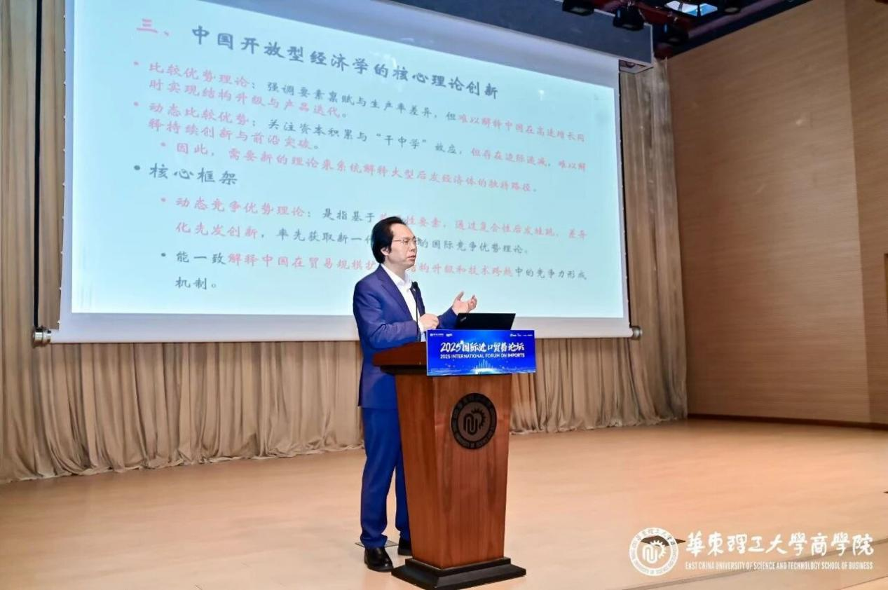 11月8日,黄先海教授应邀参加由华东理工大学主办、商学院与法学院联合承办的“多边秩序背景下的高水平开放贸易新图景”2025国际进口贸易论坛并作主旨演讲。黄先海教授在演讲中指出,现行主流理论存在一定局限性,进而提出以动态竞争优势理论为核心的分析框架,构建具有中国特色的赋能型贸易政策体系。