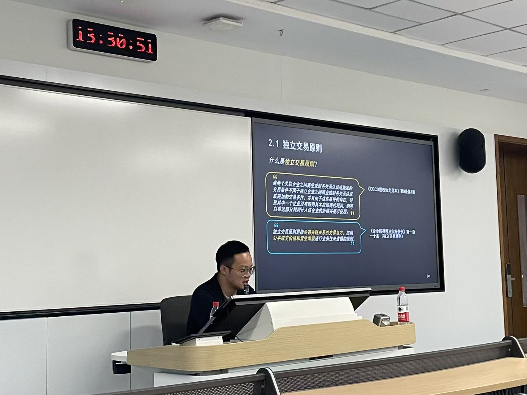 讲座伊始,方佳恩先生并未直接切入新主题,而是以知识衔接为切入点,带领同学们回顾了上期讲座中重点解读的转让定价相关公告与核心政策文件。他通过“哪份文件讲解了转让定价的合规性”等提问与同学们展开互动,同学们积极回应,快速唤醒了对前期知识的记忆。
